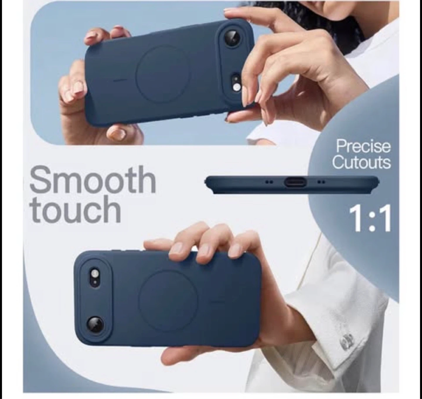 • Material and Protection: Made of high-quality liquid silicone and PC, providing a silky-soft grip, shock and fingerprint resistance, and scratch-free protection for the phone’s back and screen.