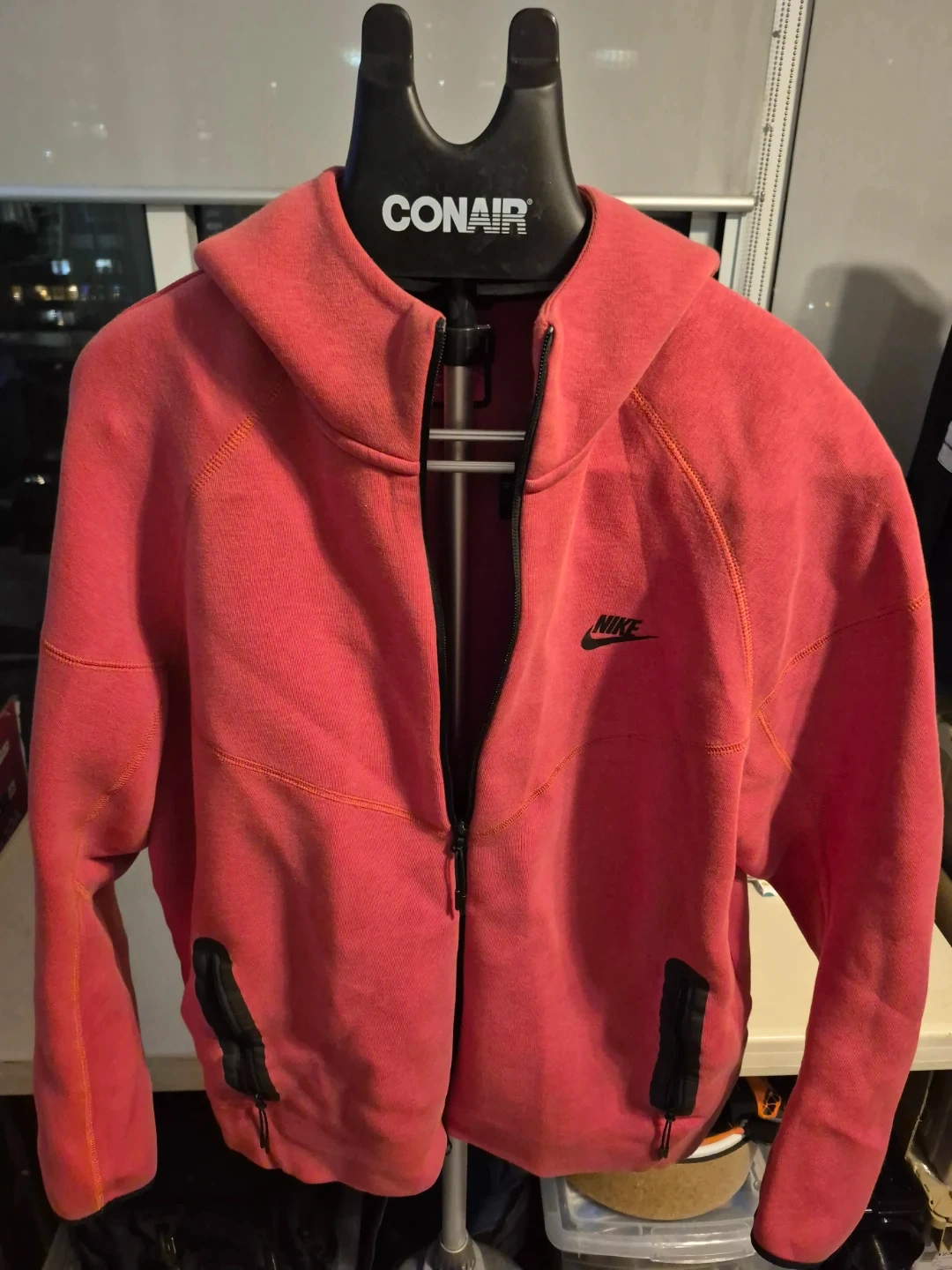 Selling a Nike Tech Fleece Hoodie in size XXL. Fits snug like an XL, perfect for layering. It's in great condition barely used and ready for a new owner! The colour is a nice coral-red.