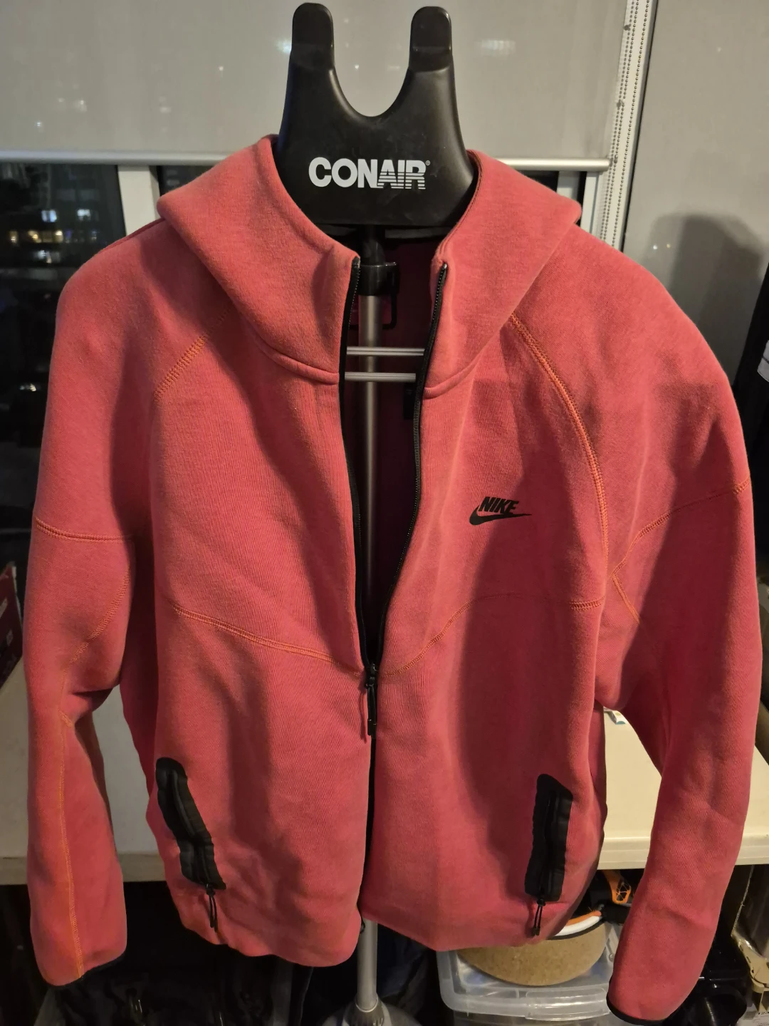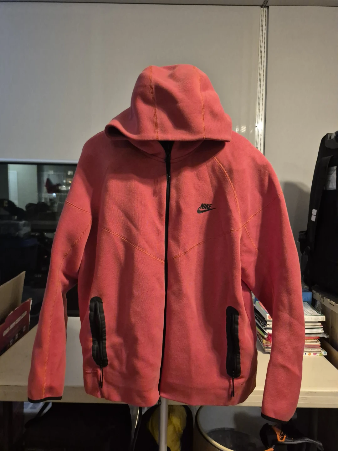 Selling a Nike Tech Fleece Hoodie in size XXL. Fits snug like an XL, perfect for layering. It's in great condition barely used and ready for a new owner! The colour is a nice coral-red.