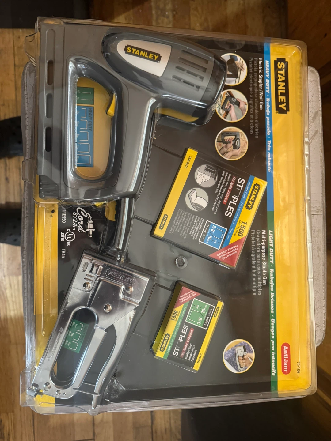 This Stanley Stapler Kit is perfect for various stapling needs, featuring a heavy-duty stapler, a light-duty stapler, and an assortment of staples. The set is brand new and sealed, ensuring that you'll have everything you need right out of the package. It's a handy addition to any workshop or home toolkit. The price is set competitively. Snag it before it's gone; if the ad's up, it's still up for grabs!