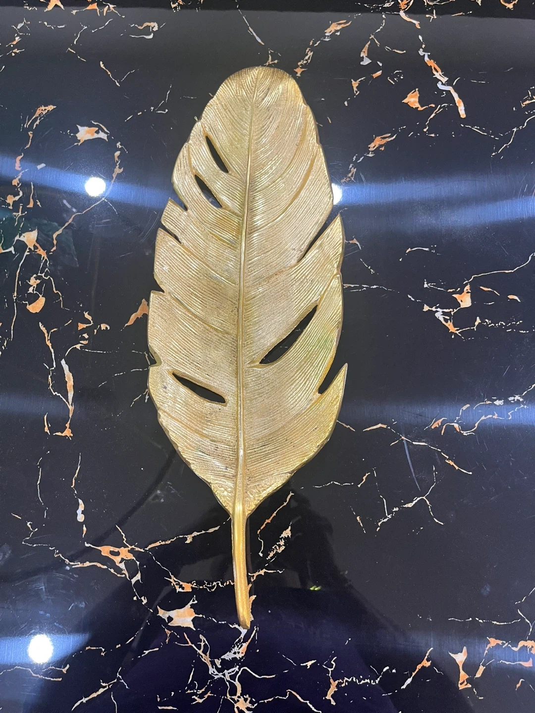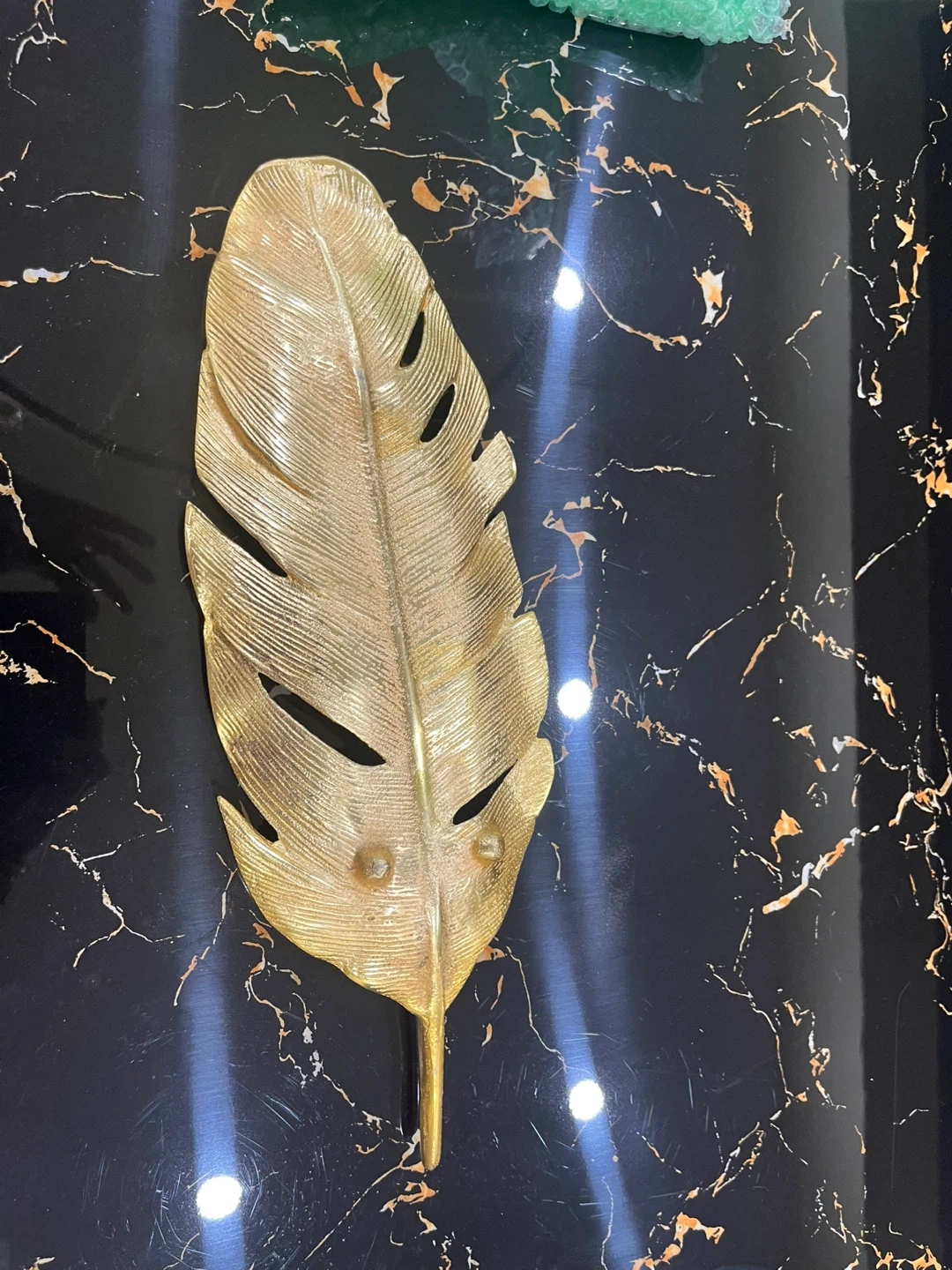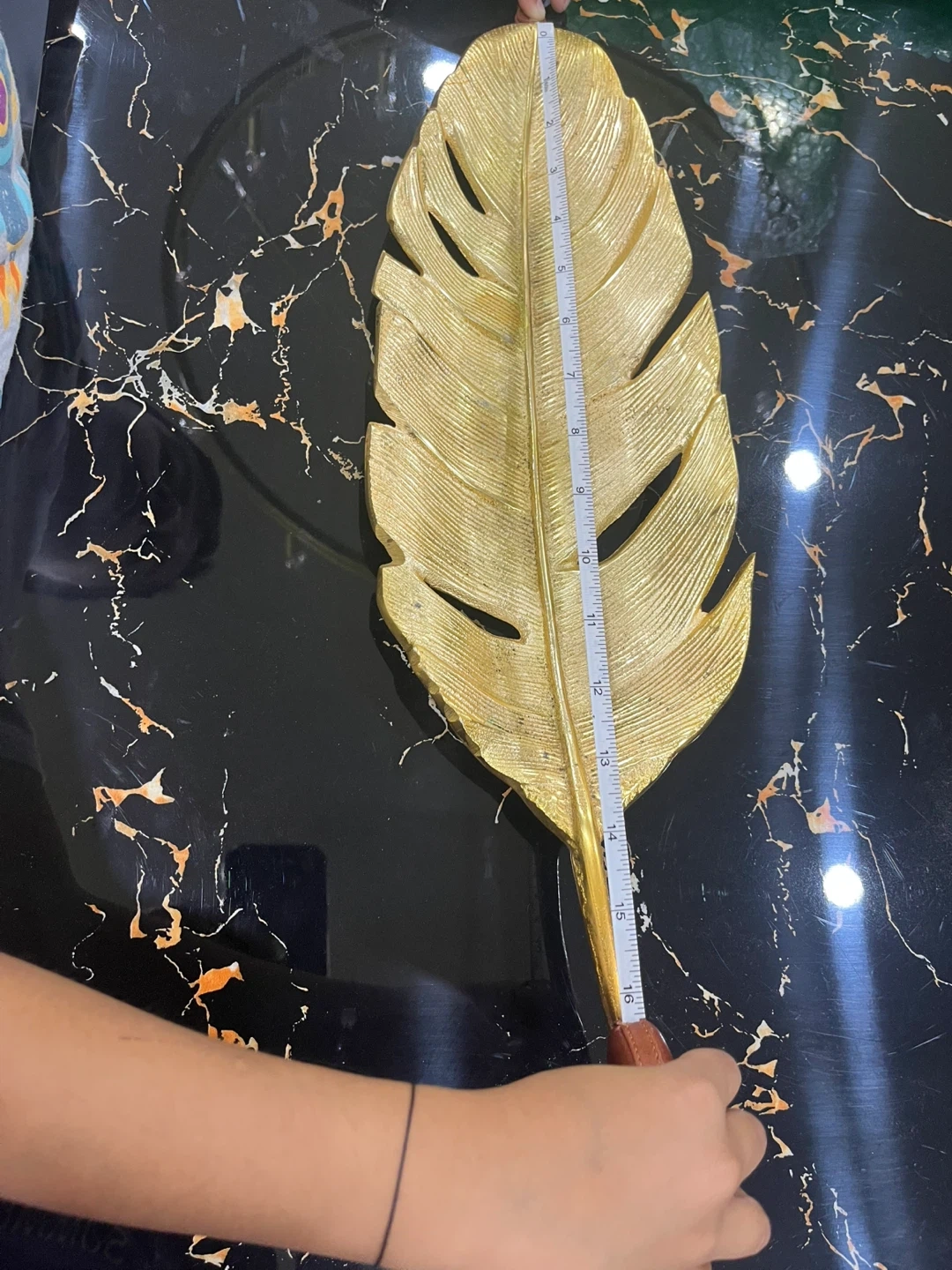 Selling a lovely gold decorative feather! It's in great shape and would look lovely as a centrepiece or wall decor. It measures approximately 16 inches in length.