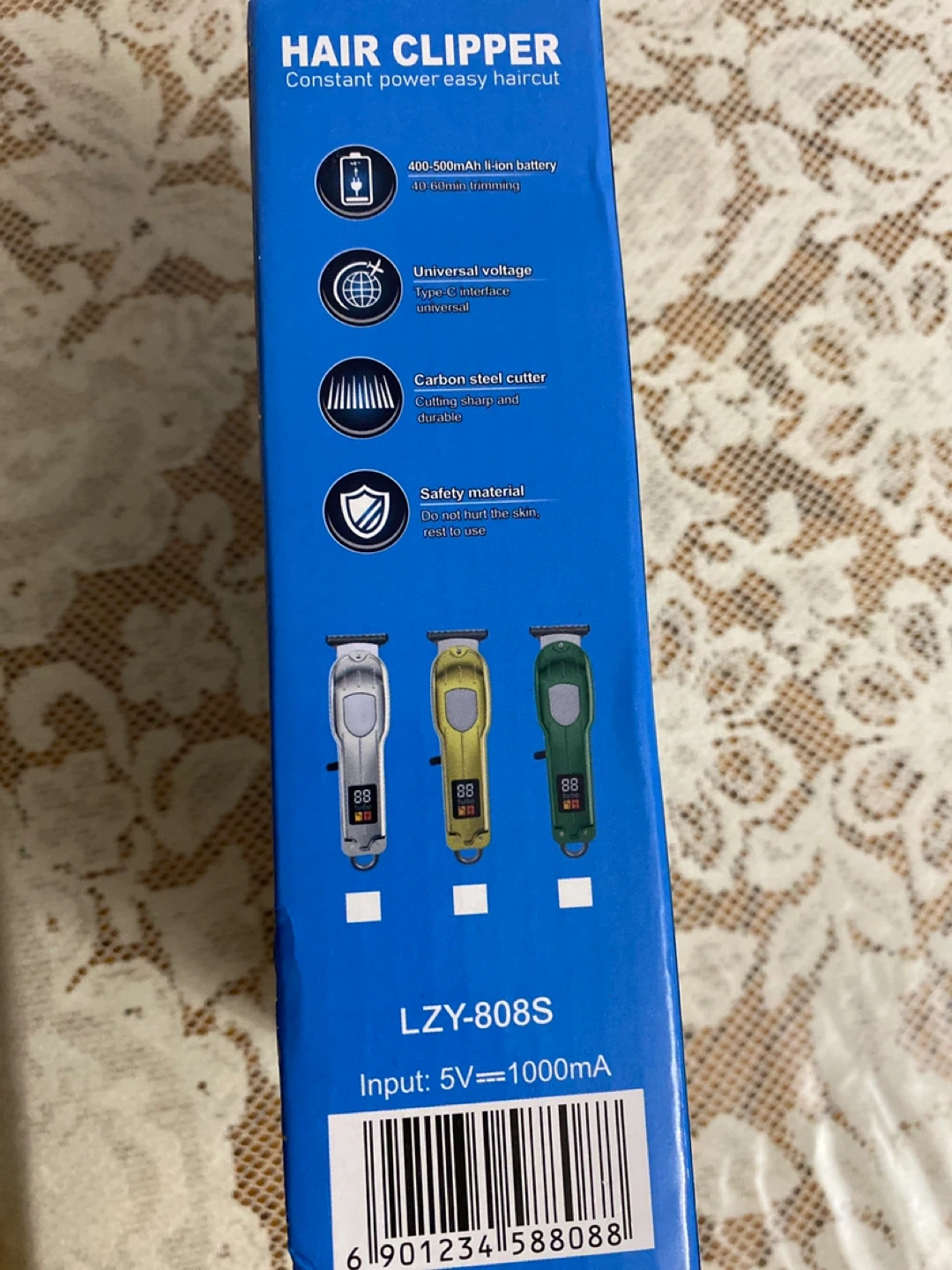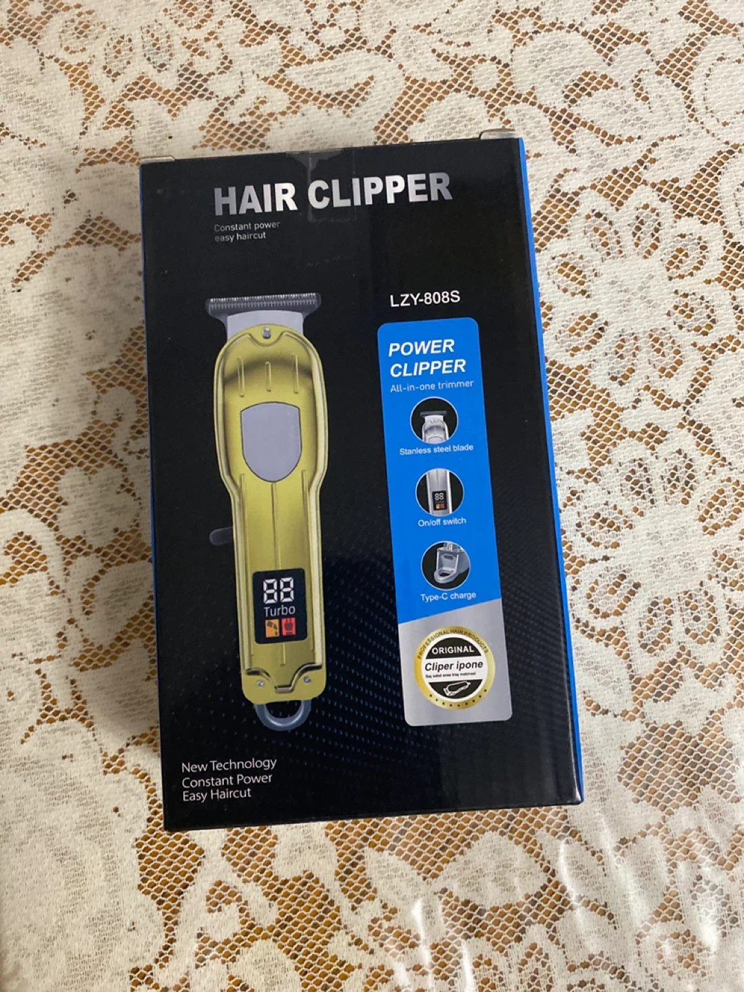 Selling a brand new hair clipper, model LZY-808S, still in its original box. It features a stainless steel blade, on/off switch, and Type-C charge. This professional hair clipper includes: