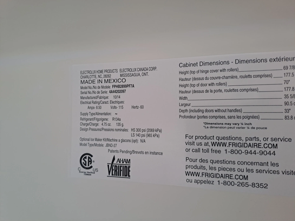 Selling a Frigidaire Professional fridge. The model number is FPHB2869PFA.