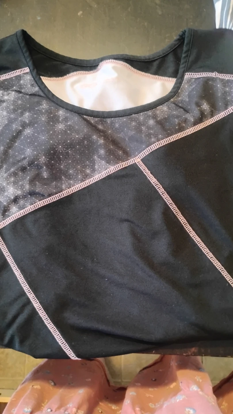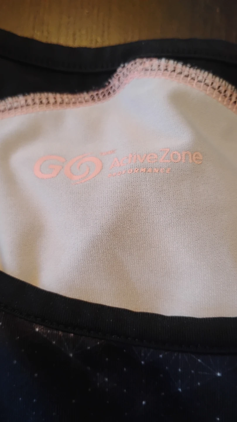 This black Active Zone Performance top features a graphic print and pink contrast stitching. It's made from a lightweight, breathable fabric. This top is great for workouts or casual wear! Size 1xl