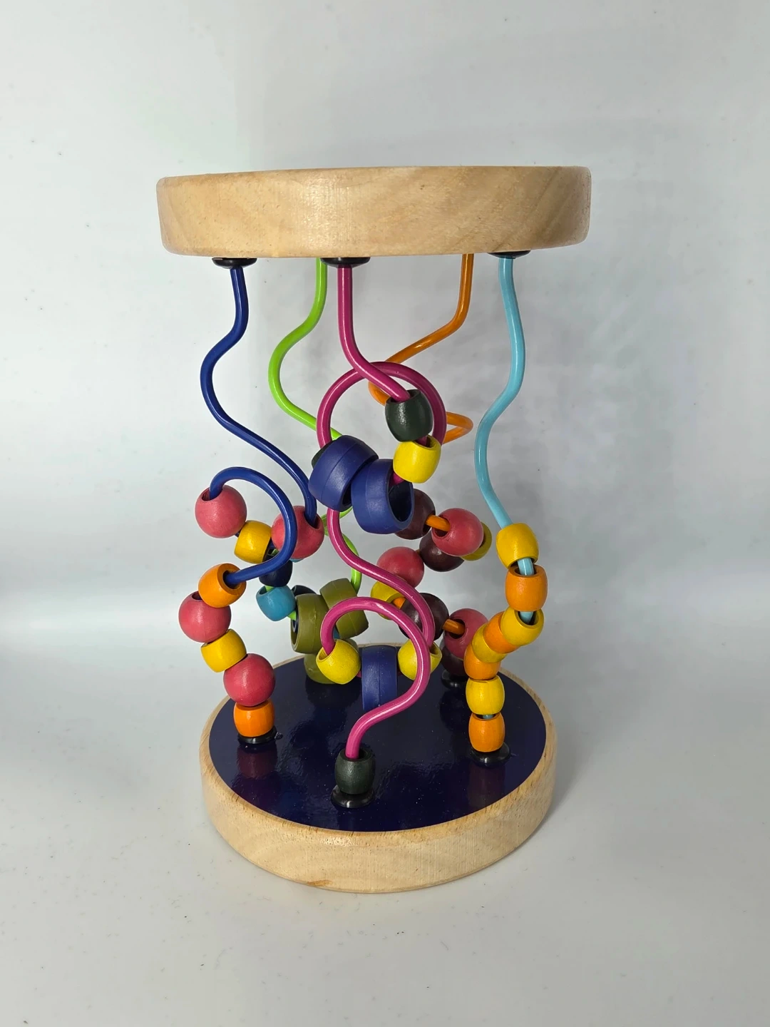 This wooden bead maze toy features colourful beads and wires for little hands to move. It's designed to help with fine motor skills and sensory development. Great for toddlers and preschoolers!