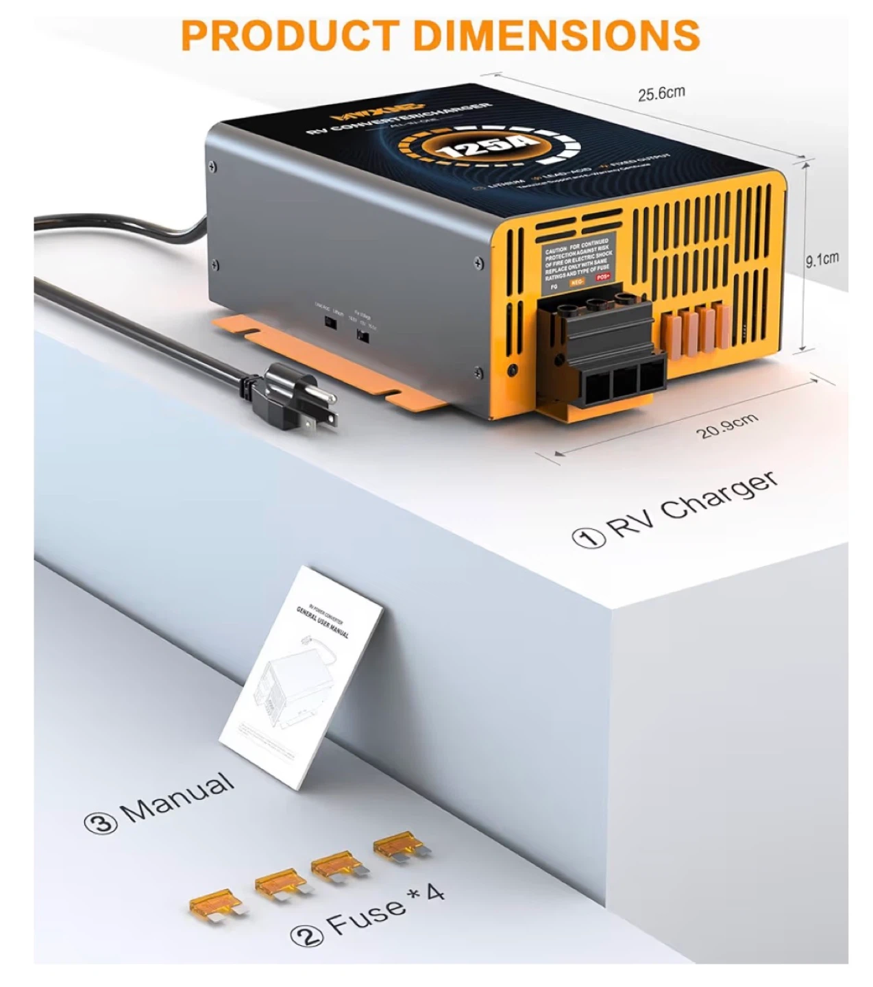 Great for RVs, campers, trailers, or any 12V system that needs a reliable power converter and battery charger.