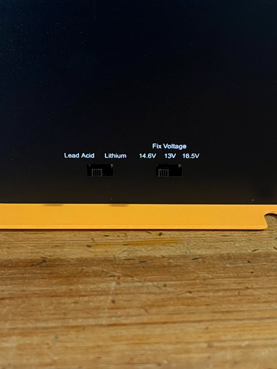 This unit includes multiple charging modes, allowing you to switch between battery types or use fixed voltage settings depending on your needs. You can select between 13.0V, 14.6V, and 16.5V output, which helps optimize charging and extend battery life.