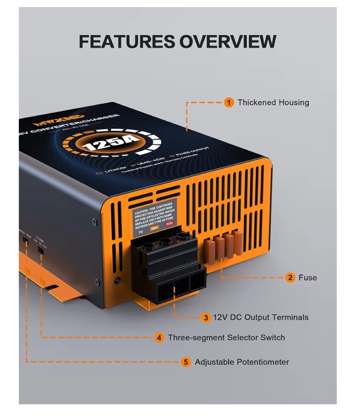 Great for RVs, campers, trailers, or any 12V system that needs a reliable power converter and battery charger.