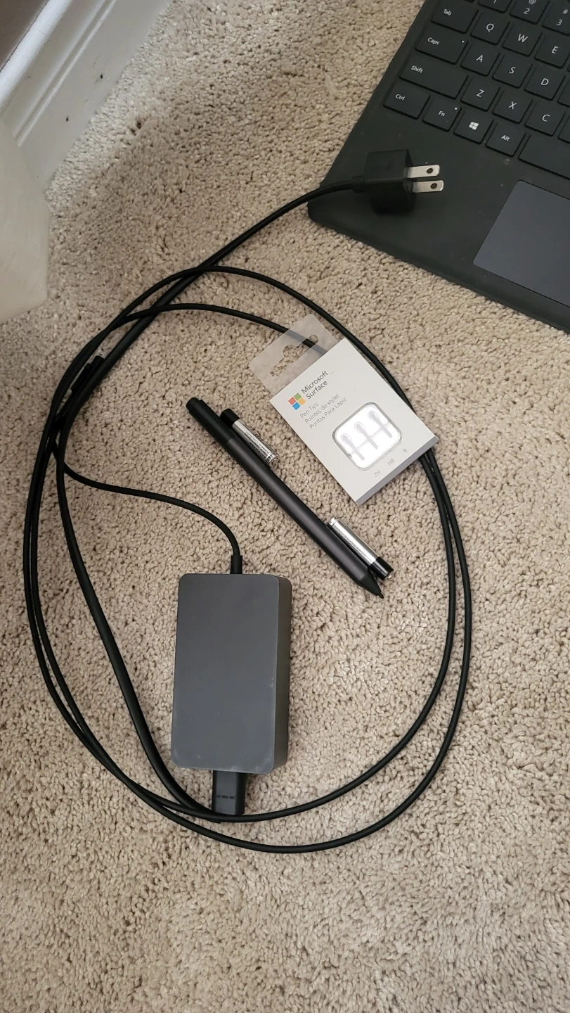 This Microsoft Surface Pro 7 is a 2-in-1 laptop with an Intel Core i5 processor and 8GB of RAM. It runs Windows 11 Home and supports pen input. Includes charger, Surface Pen, Keyboard and replacement pen nibs, 2 AAA Batteries.
