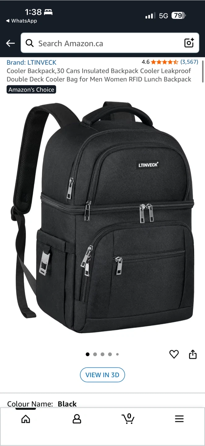 This is a LTINVECK cooler backpack in black. It can hold up to 30 cans and is insulated to keep your drinks and food cold. It has a double deck design and is leakproof. It is suitable for both men and women and can be used as a lunch backpack.
