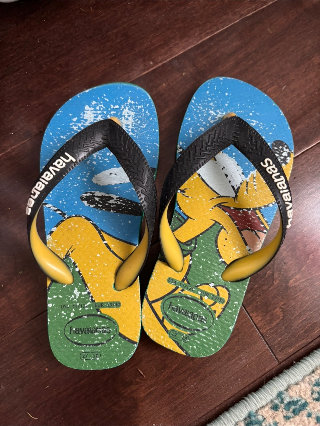 Cute Havaianas flip flops in size 11/12 (US)! Not wear a lot. Perfect for the beach or everyday wear.