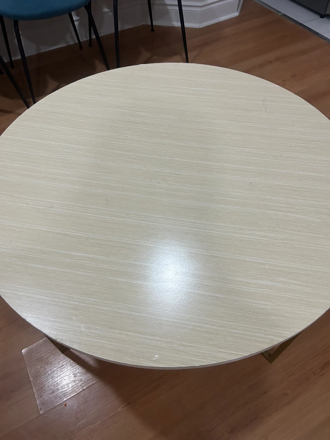 Round Coffee Table - Light Wood Finish & Gold Legs