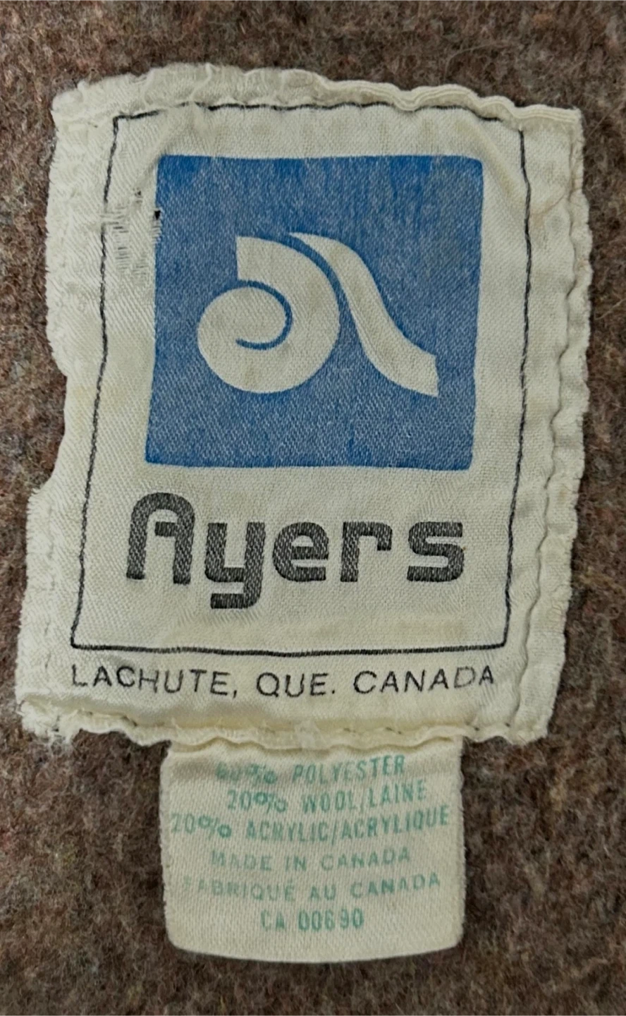 I'm selling two vintage Ayres blankets that are 60% polyester, 20% wool, and 20% acrylic, made in Lachute, Quebec, Canada. Note that these blankets are in fair condition due to some holes and wear, which is reflected in the price. Still, they're perfect for adding a touch of retro charm to your home or cottage!