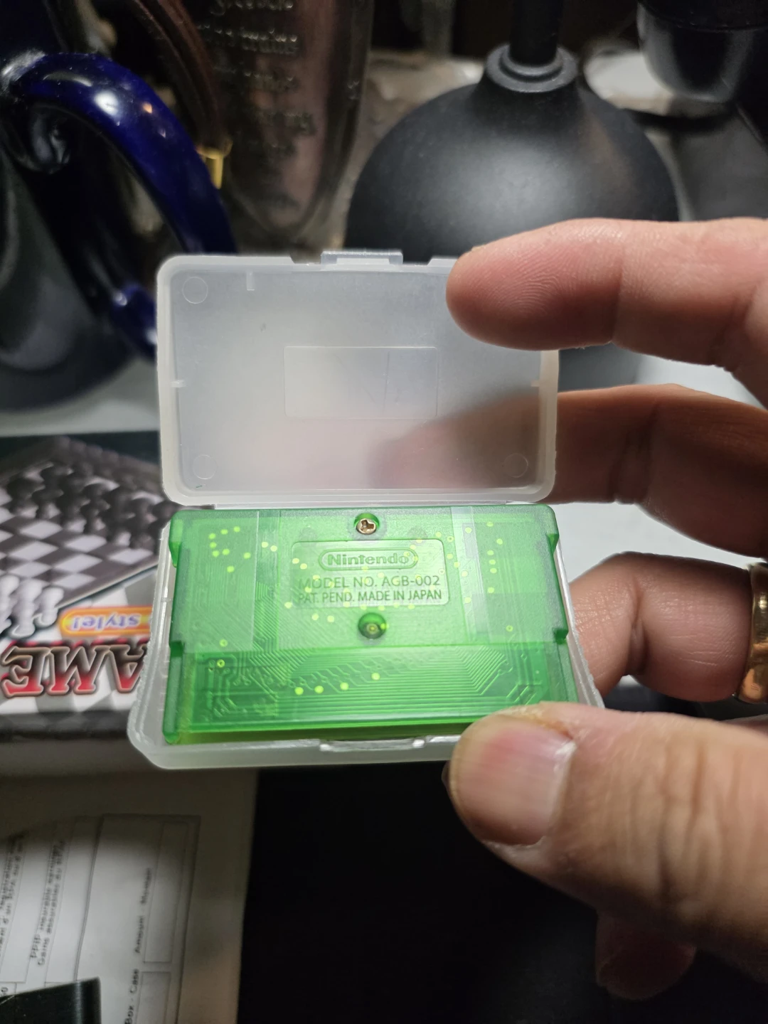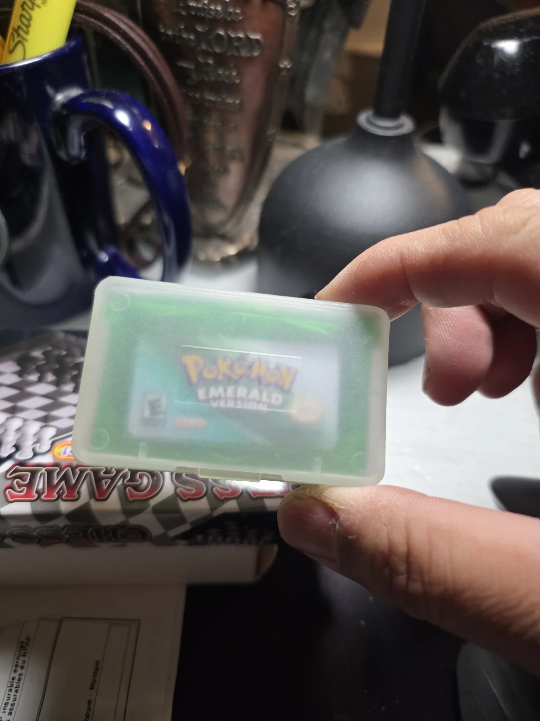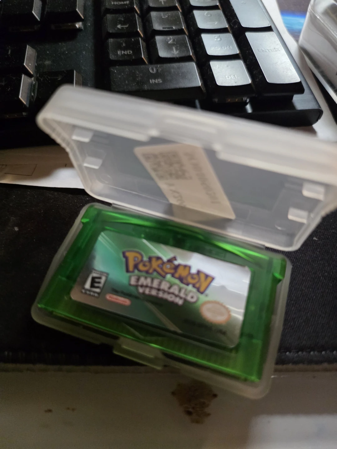 This is look like replica Pokémon Emerald Version game cartridge for the Game Boy Advance. It's in a clear plastic case and comes with its original label.