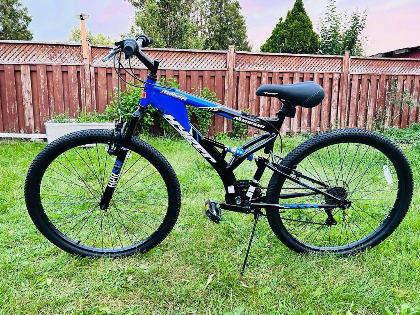 Durable aluminum dual suspension frame, 21-speed twist shifters with Shimano rear derailleur, Preminum padded and adjustable saddle, Alloy wheels and three piece cranks, Front and rear linear pull brakes