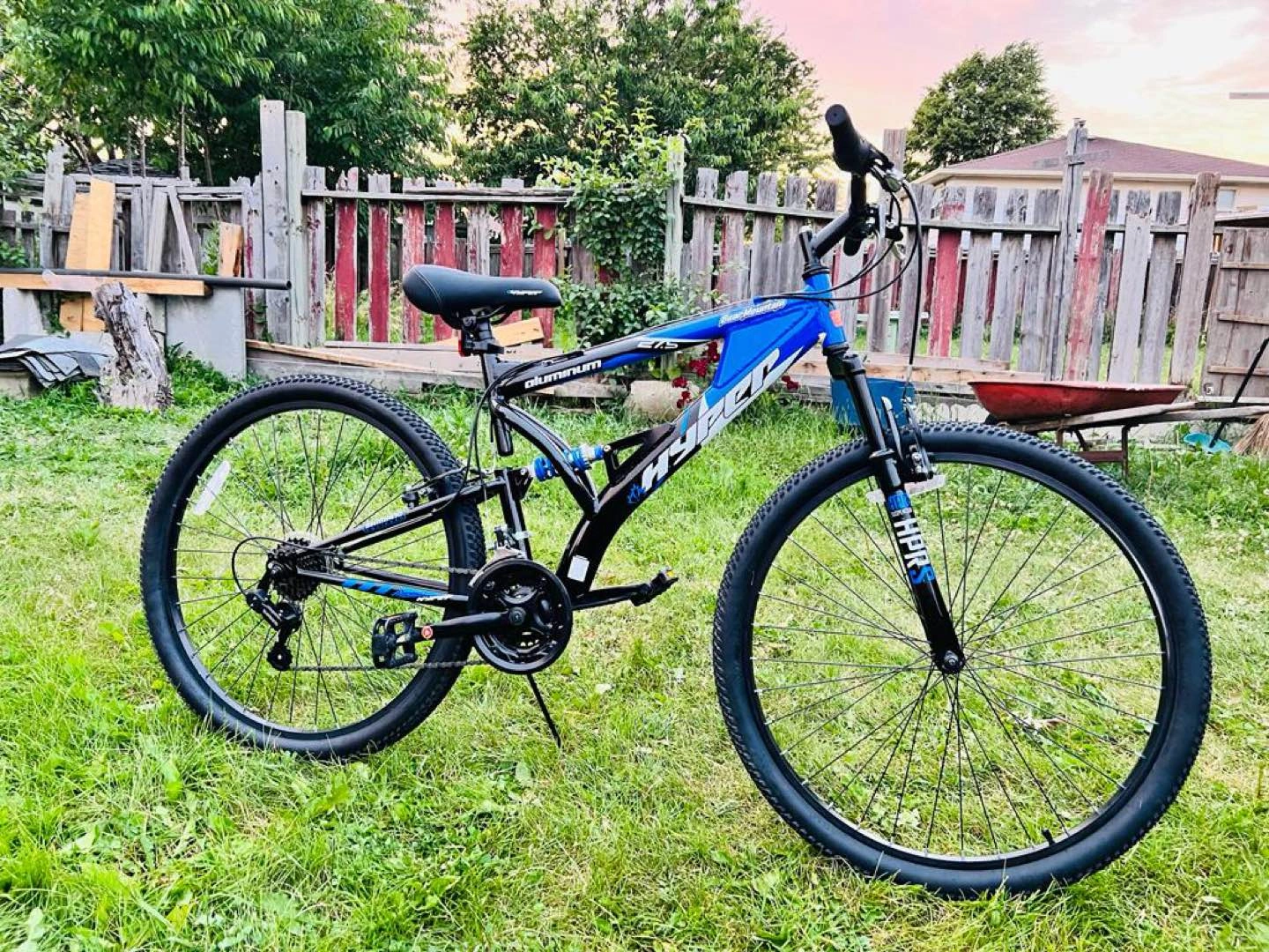 Popular for trails and casual riding; full suspension improves handling for off-road on this 27.5 inch Hyper Bear Mountain Bike