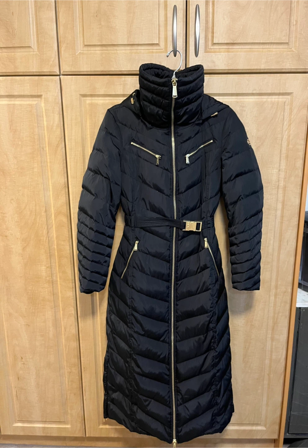 Selling a size S Michael Kors LONG black puffer coat keeps your legs super warm in winter especially if wearing a dress. It's in great condition and ready to keep you warm this winter with 100% down filled. Neck zips right up to give extra layer of warmth. The coat features a stylish design with a belted waist and gold-tone zippers. Asking $140. Pickup north Ajax.