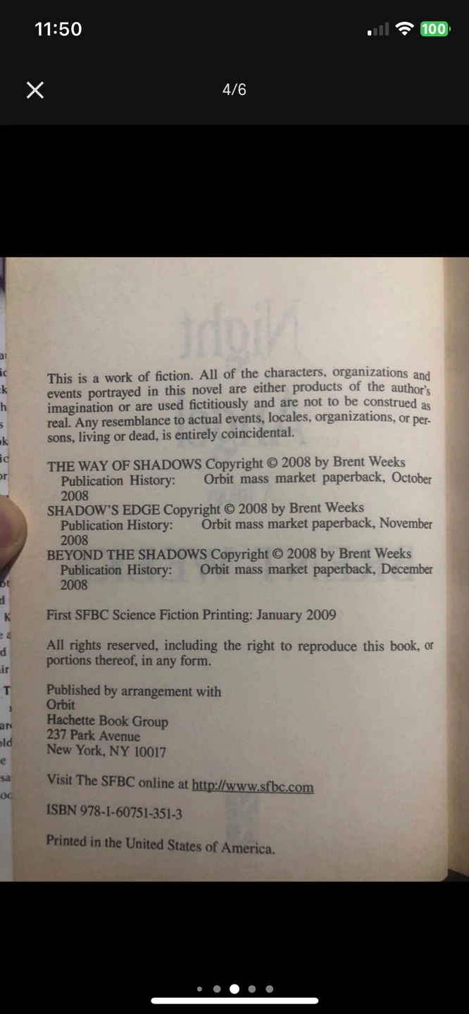 First printings of Brent weeks Night Angel Trilogy Omnibus (SFBC) and signed/numbered prequel Perfect Shadow (Subterranean Press) with multiple interior illustrations not in any other printing.