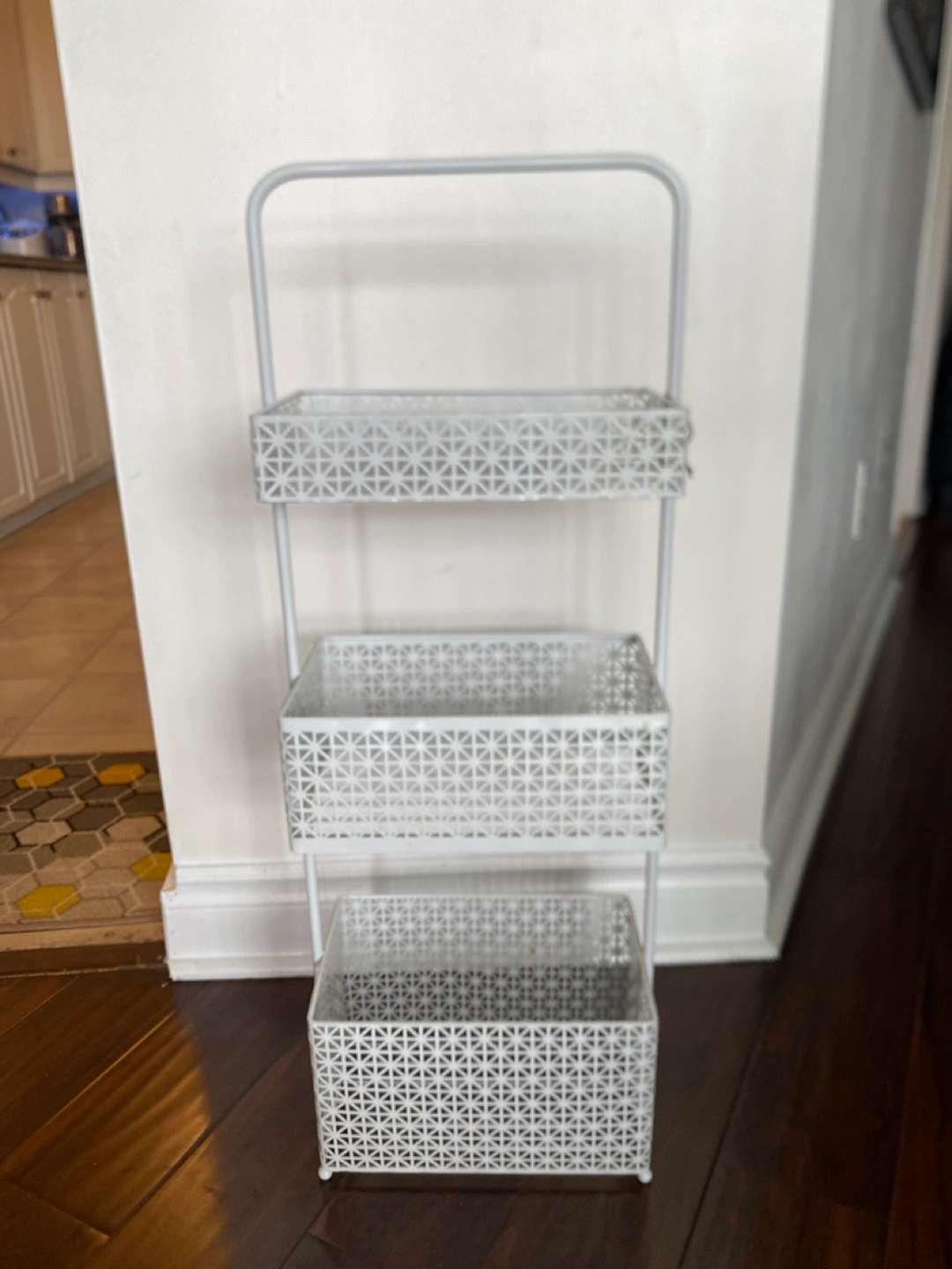 Selling a handy metal storage rack with three tiers! It's perfect for organizing items in spaces where you need a little extra storage.