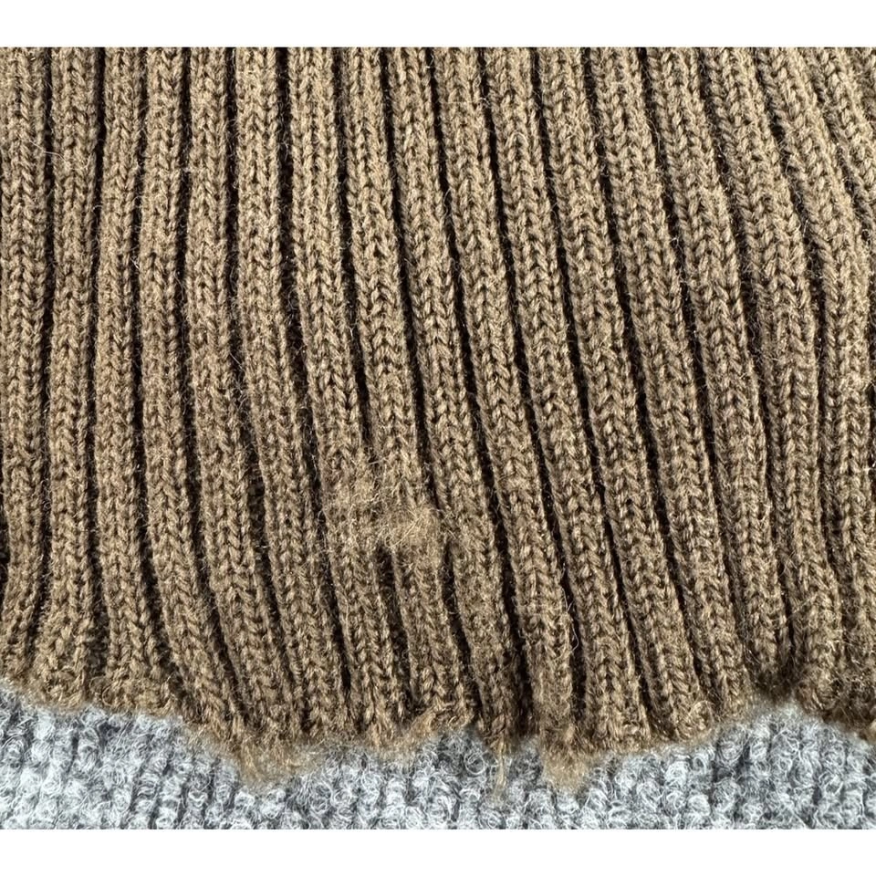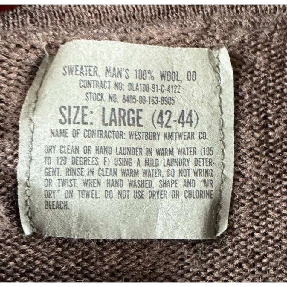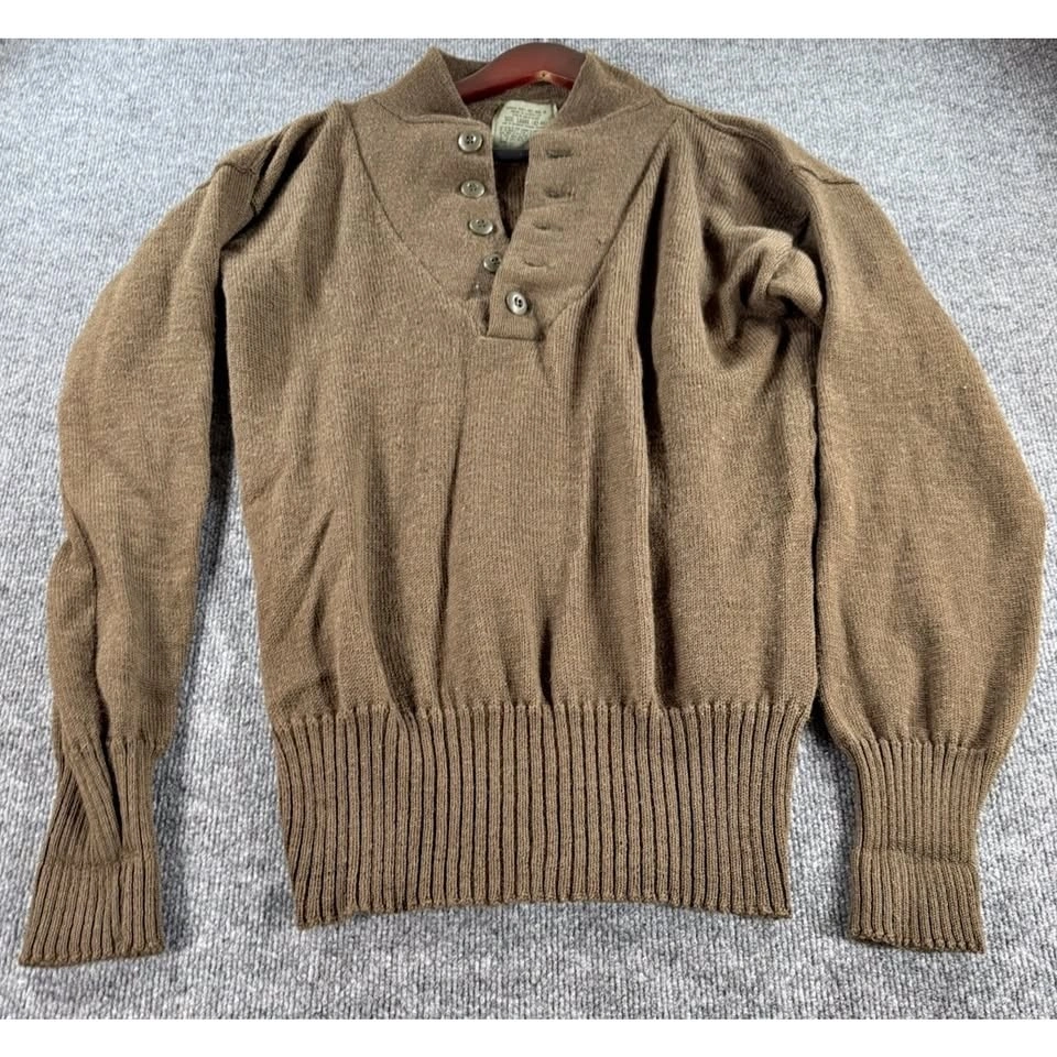 This is a genuine 1975 US Military issue 5-button wool sweater produced by Westbury Knitwear Co. Made from 100% heavy-duty wool, it features a traditional tight-knit design with a high button-up neck (mock neck style) and ribbed cuffs for maximum heat retention.