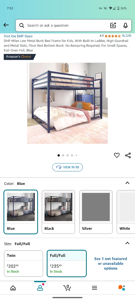 DHP Miles Low Metal Bunk Bed Frame - Full/Full - Blue