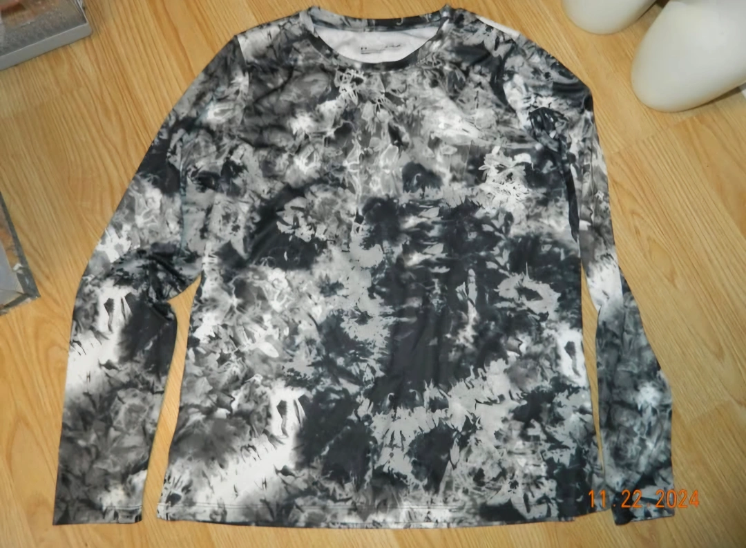 someUnder Armour long sleeve shirt in a cool grey and black pattern! Perfect for workouts or casual wear. It's in great shape and ready for a new home
