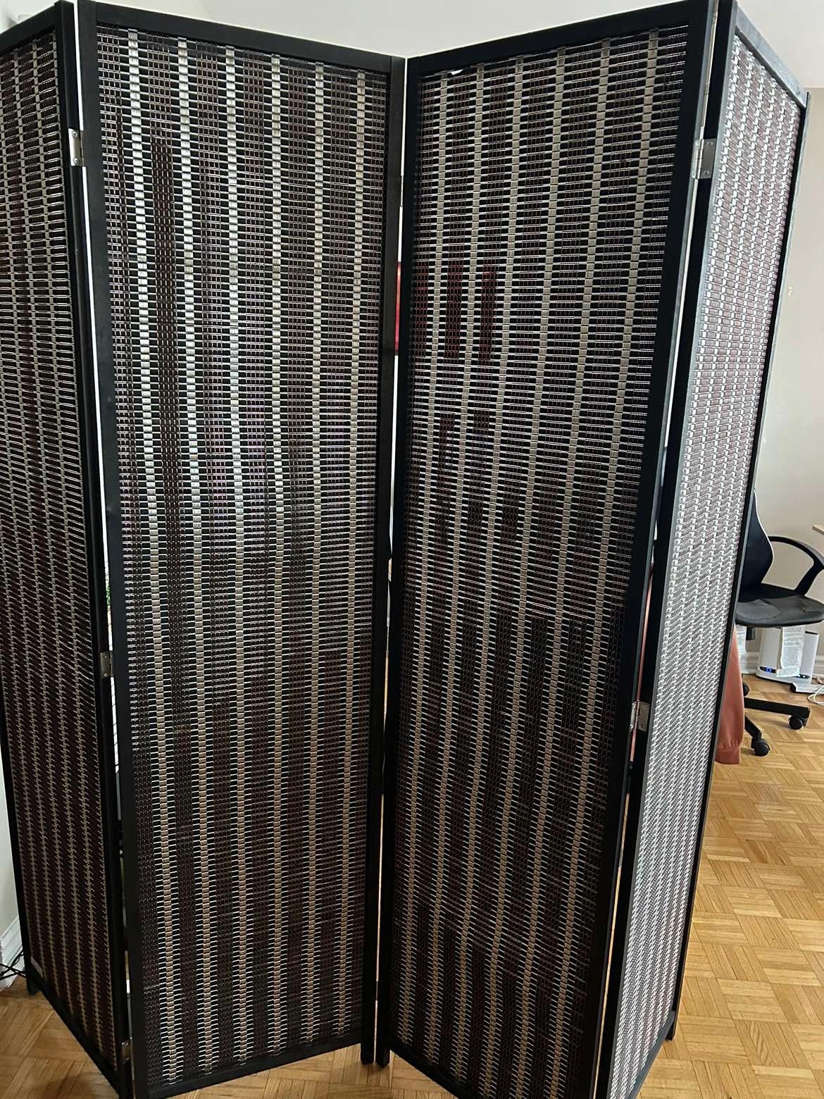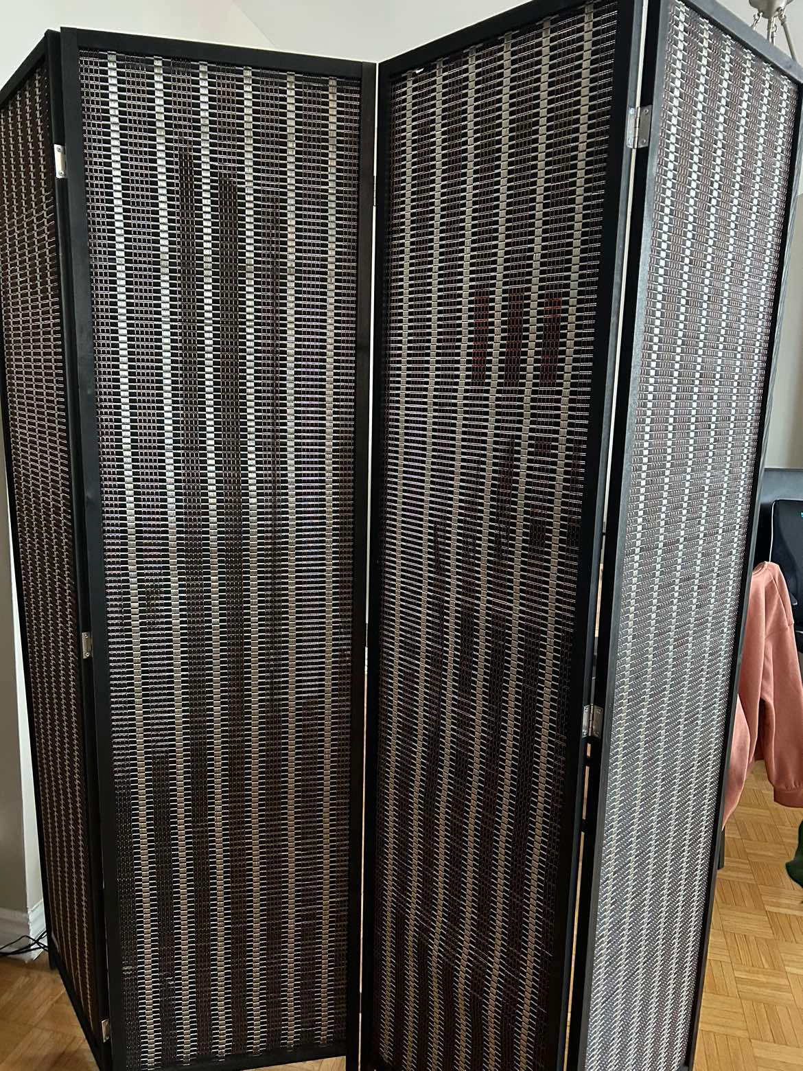A beautiful bamboo room divider that you can use in the kitchen, living room, bedroom for added privacy. It’s very easy to move and like new. It’s also opaque and decently blocks light when placed near the window.