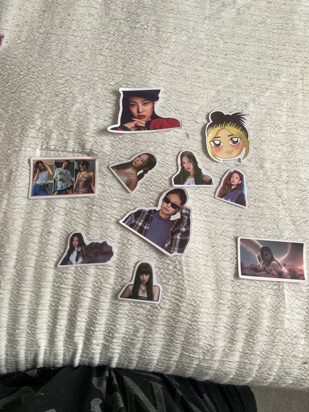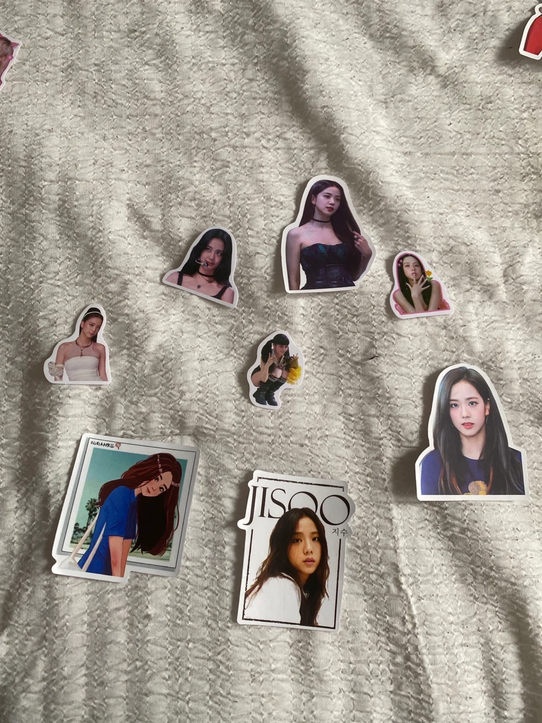 A 50+ collection of stickers featuring members of the popular K-Pop group BLACKPINK. These decals showcase individual members and group shots. They're perfect for decorating laptops, water bottles, or journals.