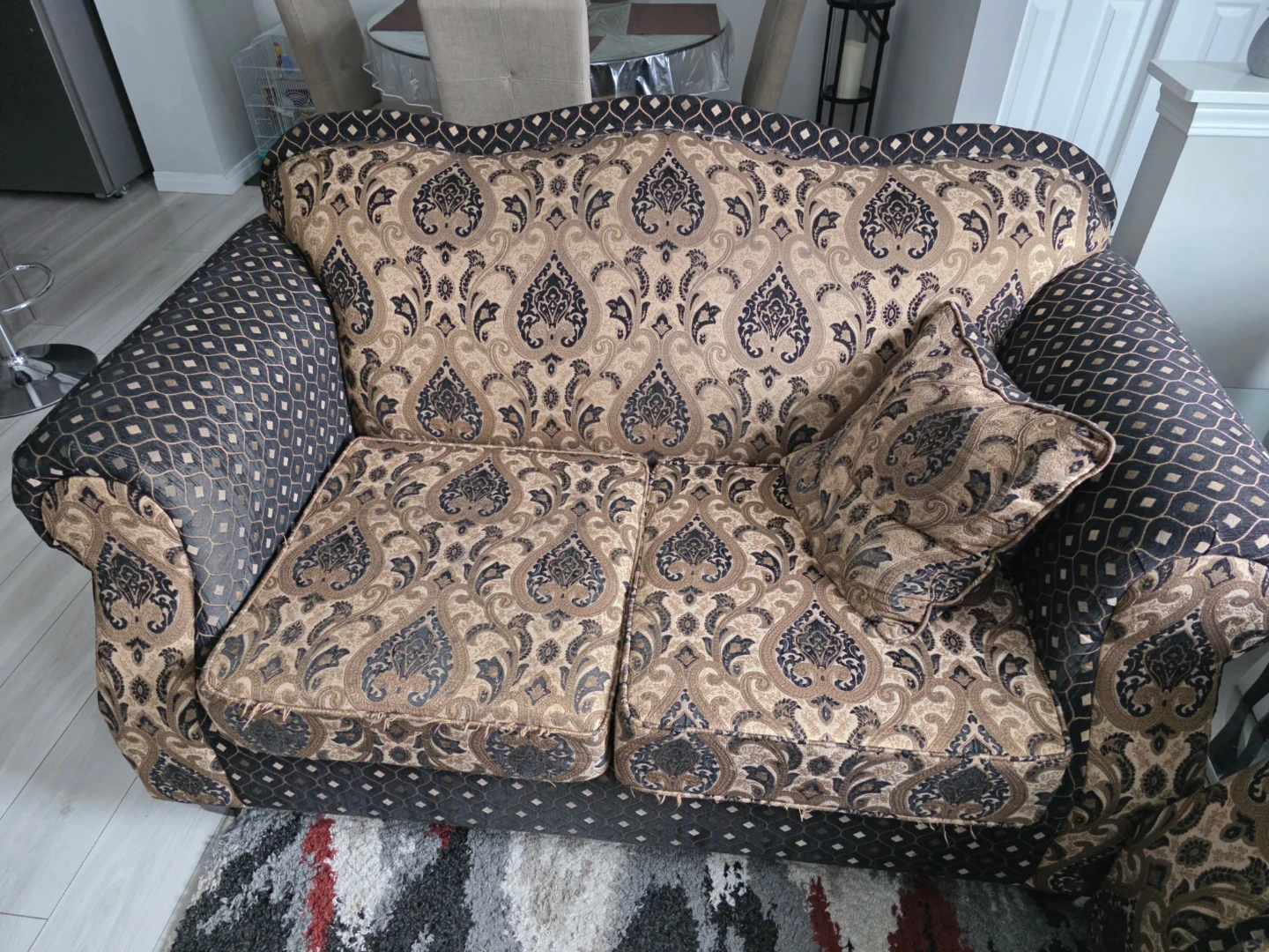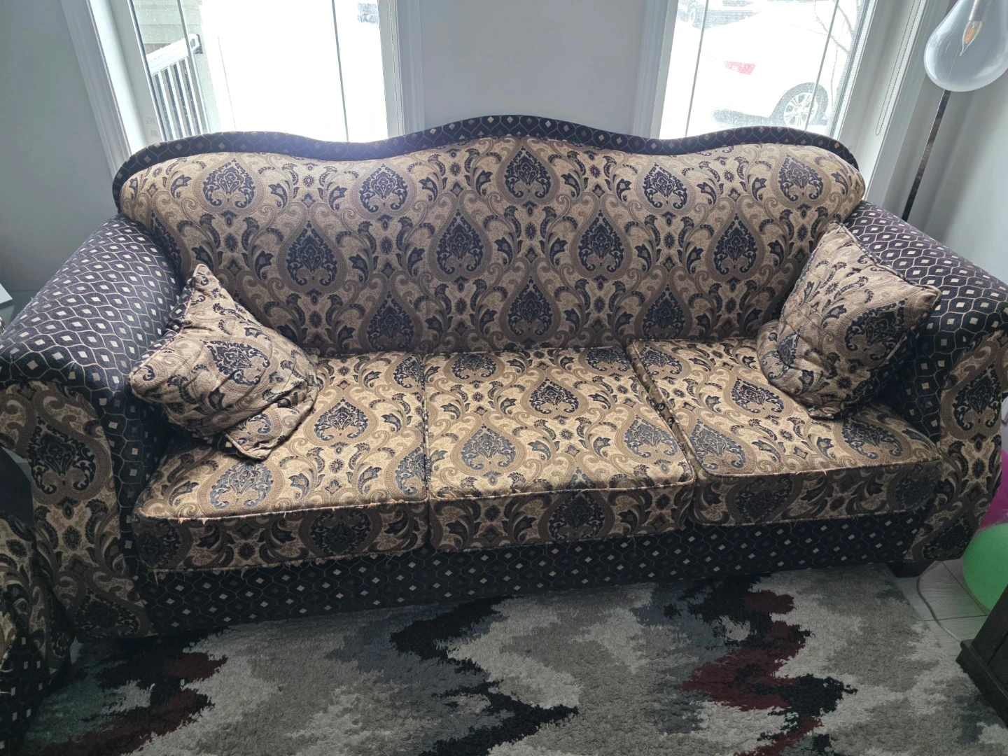 Damask Pattern Sofa with Accent Pillows