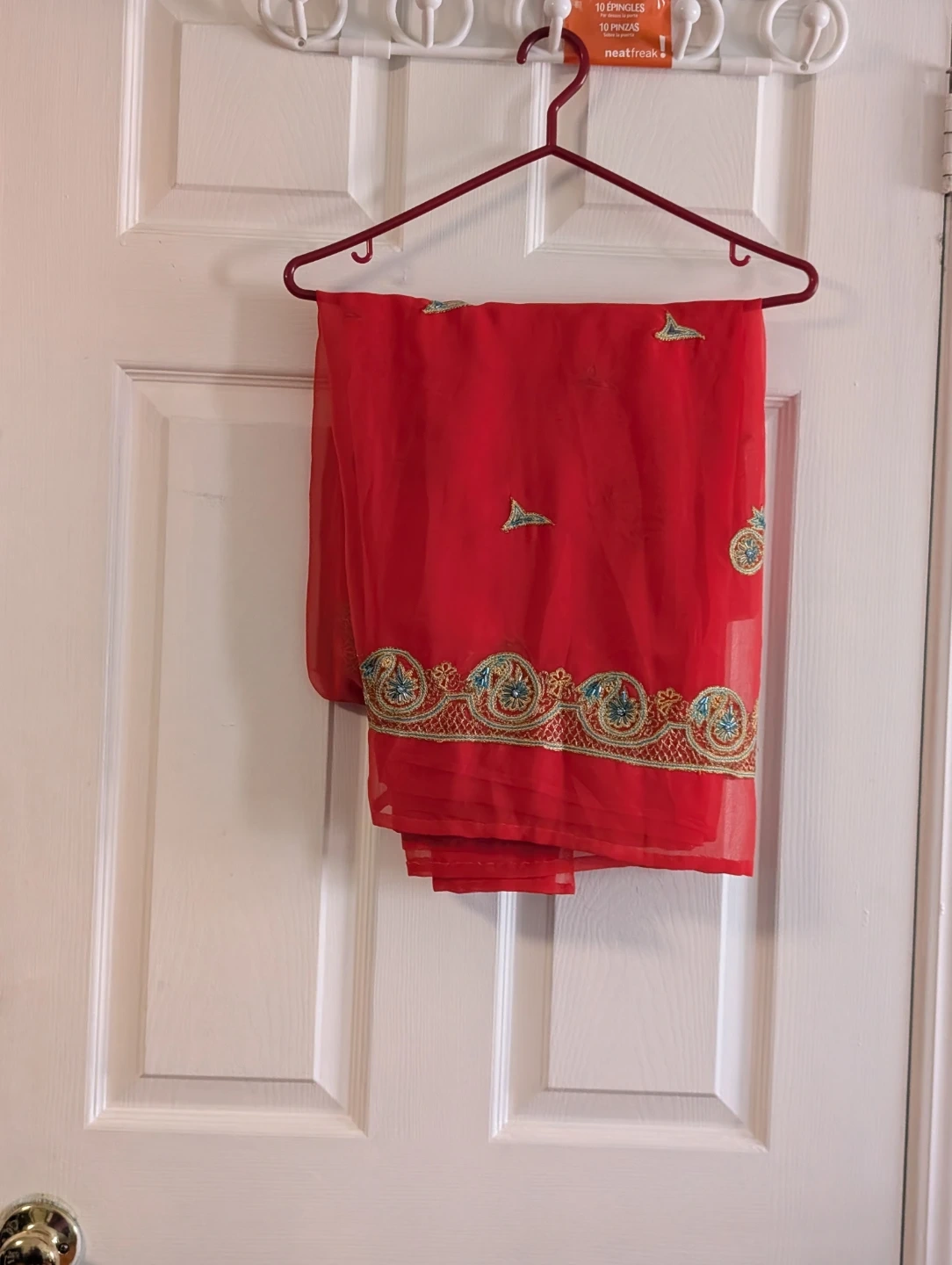 This bundle includes four beautifully designed Indian saris in vibrant colours. Features include intricate embroidery and detailed borders on each piece. Suitable for special occasions or everyday wear.