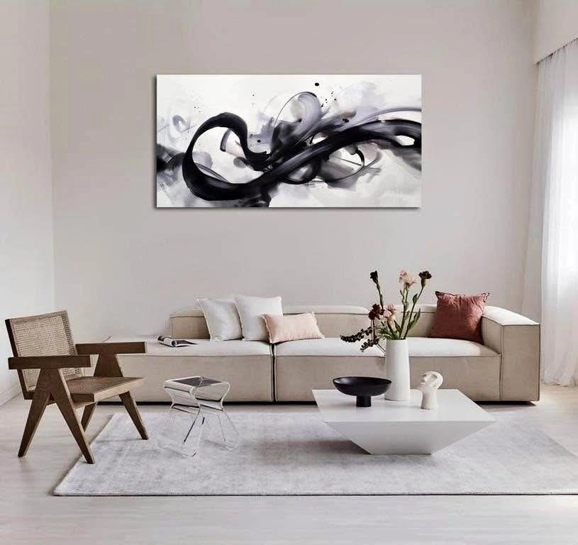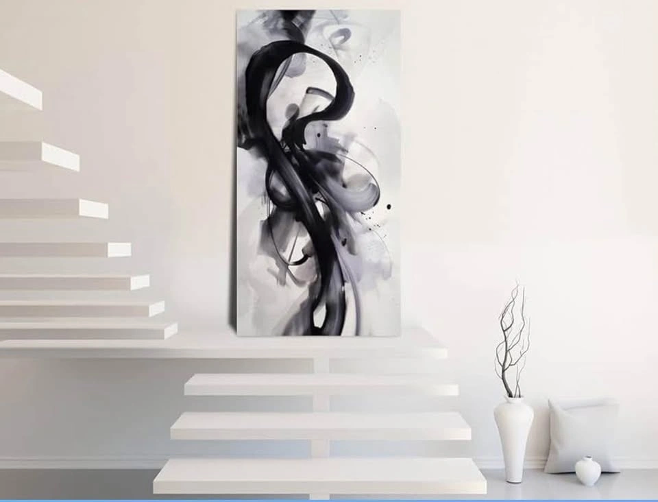 Black White Abstract Wall Art Canvas Geometric Lines Print Picture. Large 75x150cm Contemporary Artwork Painting for Home Décor. 75x100 cm big. Pretty good for living rooms.