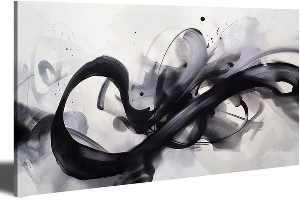 Black White Abstract Wall Art Canvas Geometric Lines Print Picture. Large 75x150cm Contemporary Artwork Painting for Home Décor. 75x100 cm big. Pretty good for living rooms.