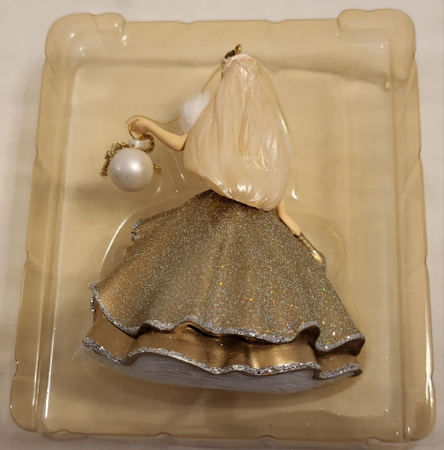 BNIB 2000 Celebration Barbie Ornament. It features Barbie in an evening ensemble with a gown that shimmers. Includes original box. Box only open to take the posted pictures.