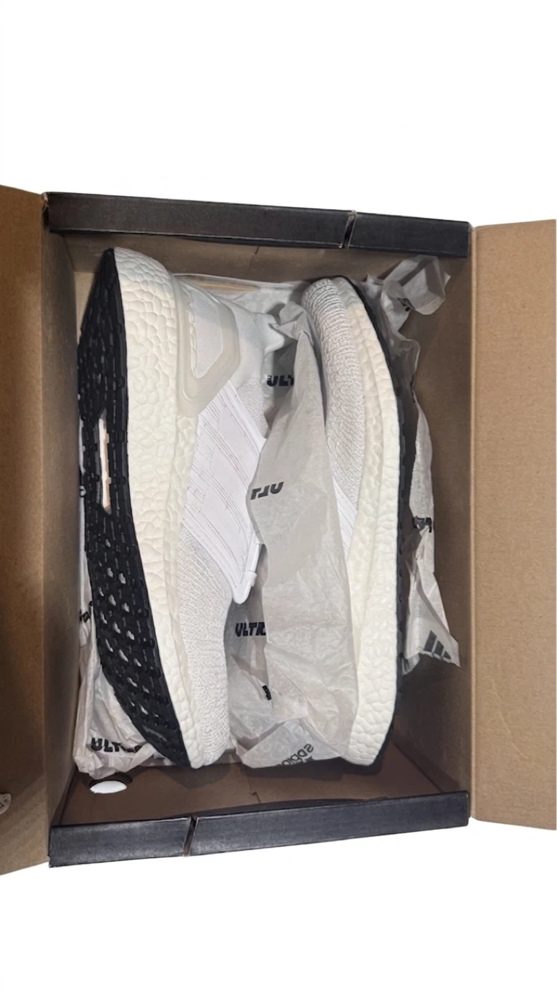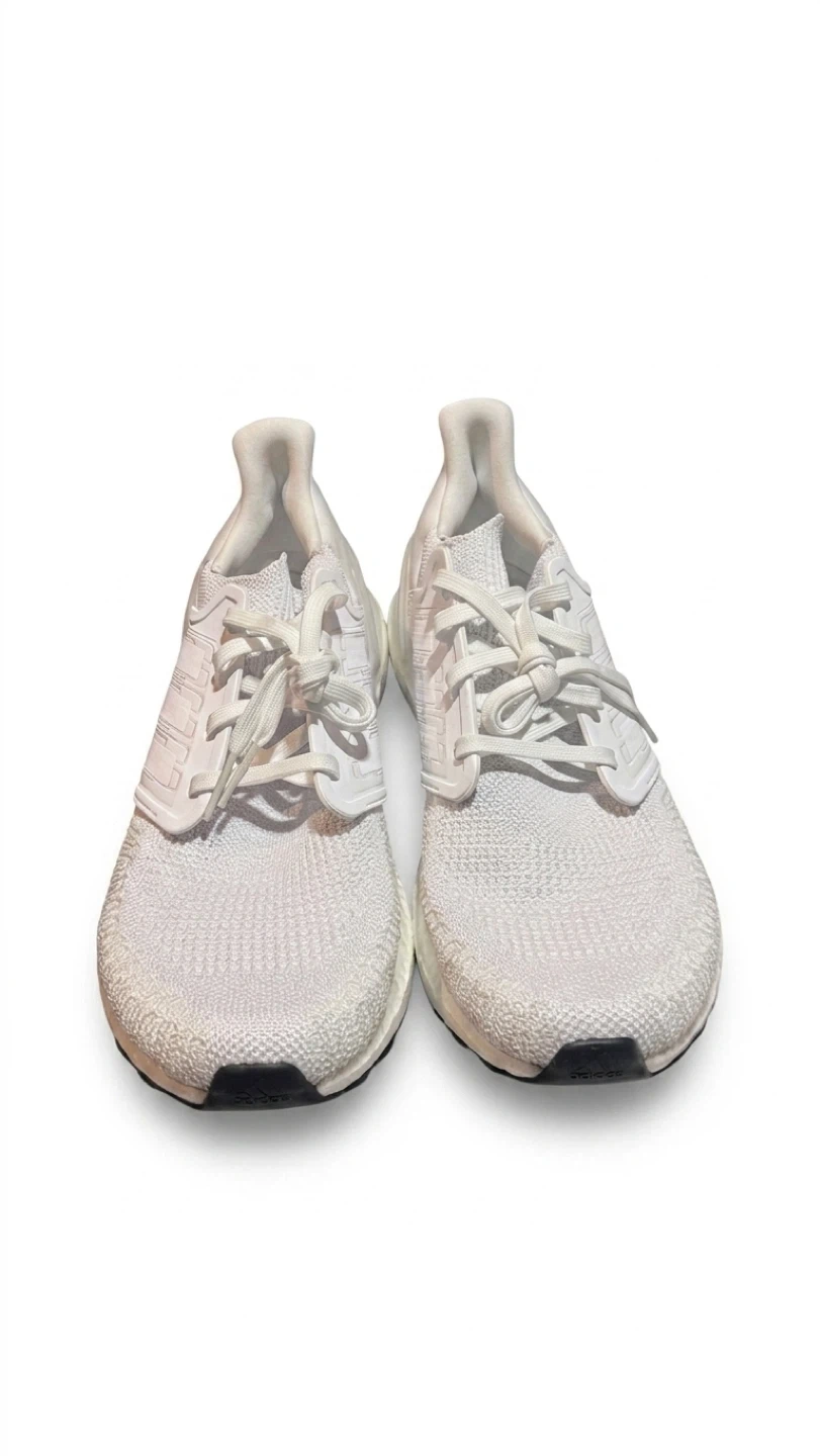 Brand new!! White Adidas Ultraboost 20 running shoes. Men's size 10 US. Includes original box and packaging. These shoes are designed for running.