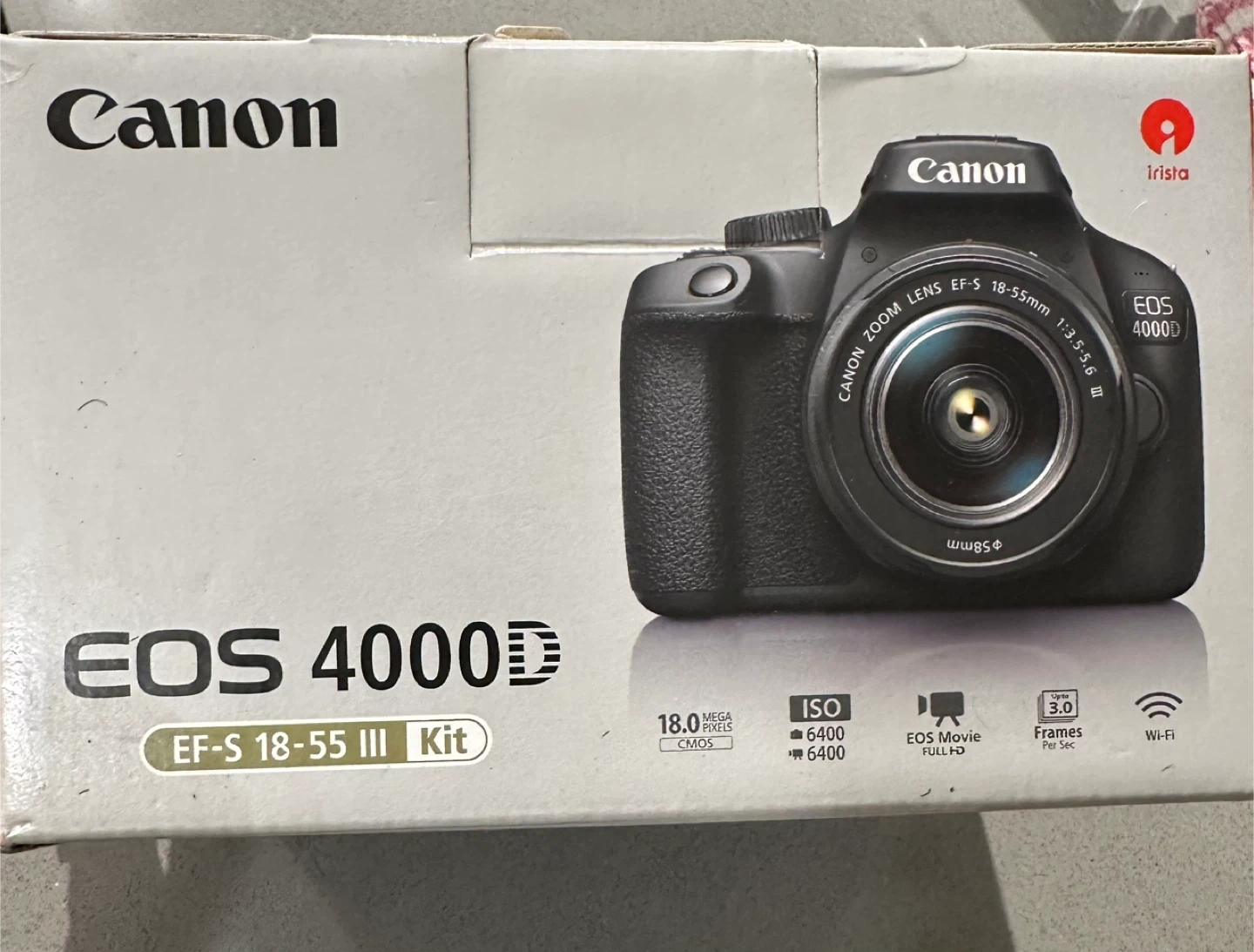 Selling a Canon EOS 4000D camera with an EF-S 18-55mm III lens. It's a 18.0 mega pixel CMOS camera capable of full HD EOS movie recording. Includes battery, charger, and strap. Great for capturing everyday moments!