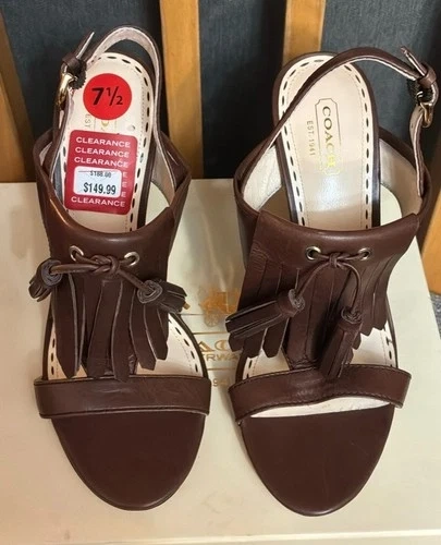 New in box Coach Leather Tassled Heeled Sandals size 7.5