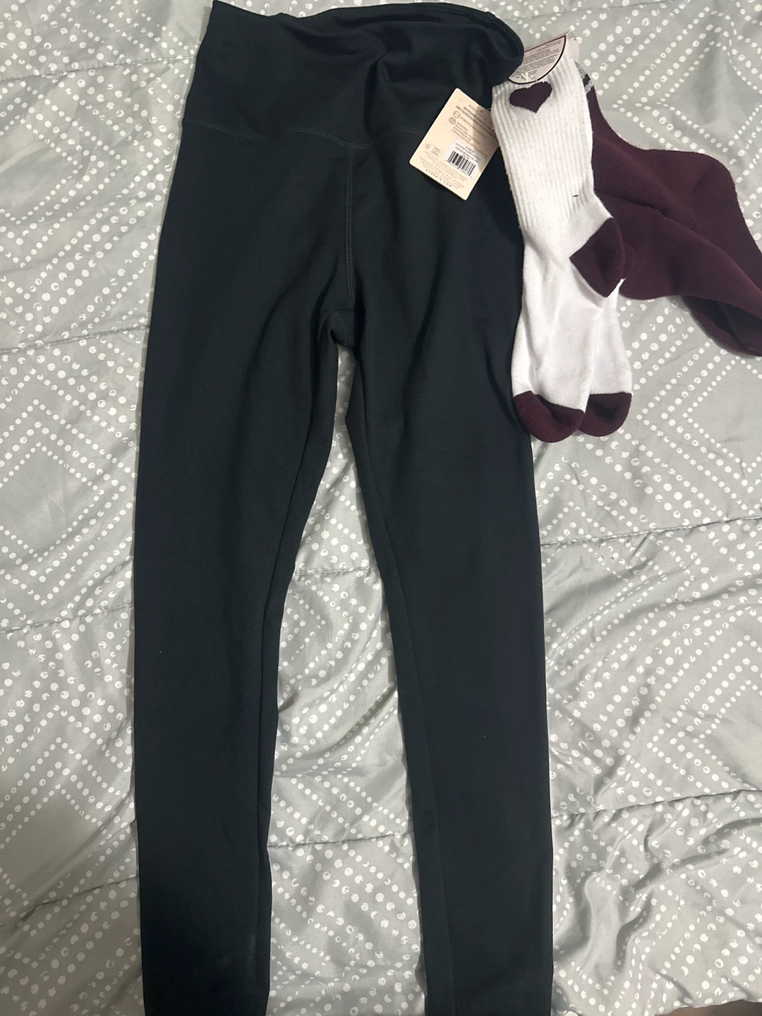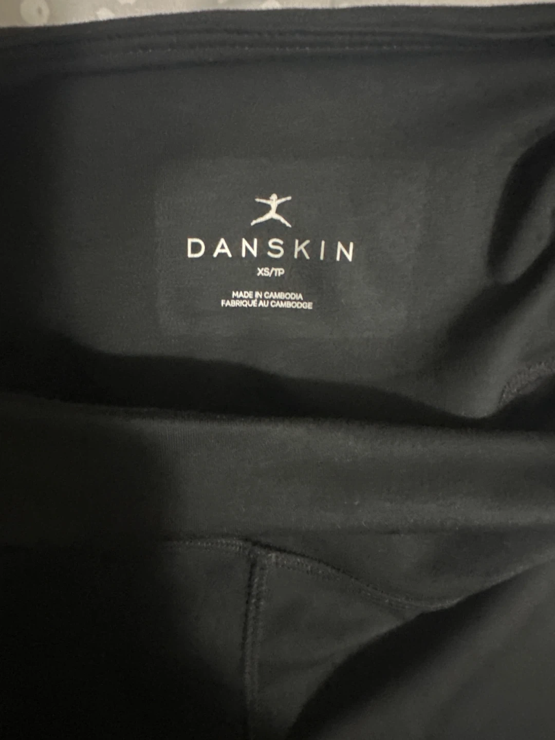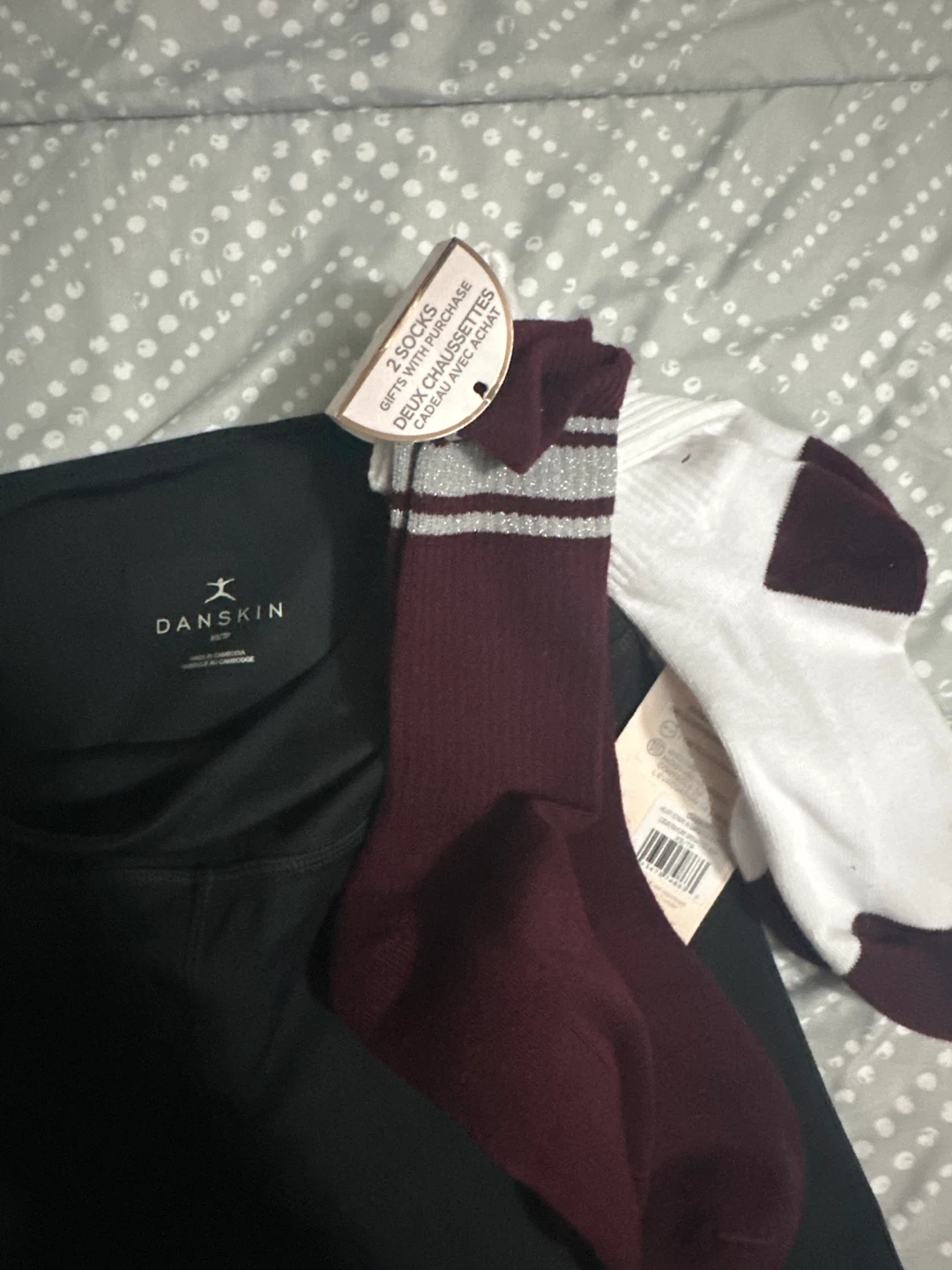Danskin high rise bonded leggings in black, size XS/TP. Includes 2 pairs of crew socks. Wicking material for moisture control.