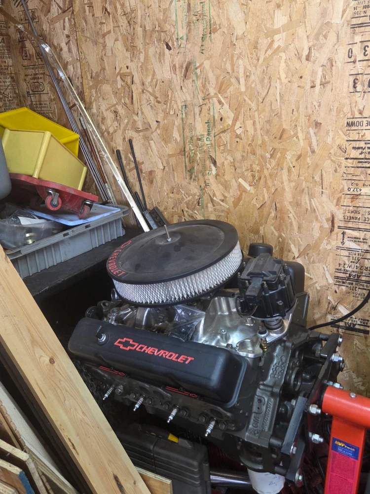 Selling a Chevrolet 350ci engine. The engine build sheet indicates the date completed was May 20, 2009. Parts include: SBC 350ci block, SBC 400ci headers, crankshaft, pistons, rods, main bearings, oil pump, camshaft, rocker arms, valve springs, push rods, lifters, timing chain, harmonic balancer, intake manifold, carburetor, fuel pump, water pump, distributor, oil pan, valve covers, and air cleaner