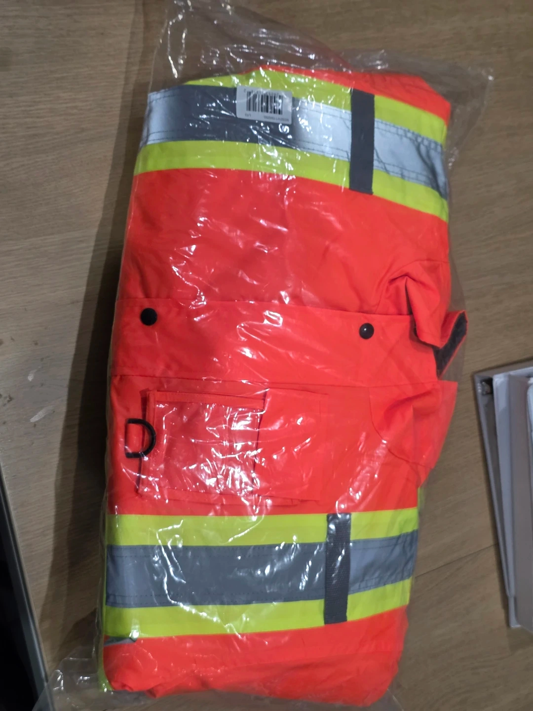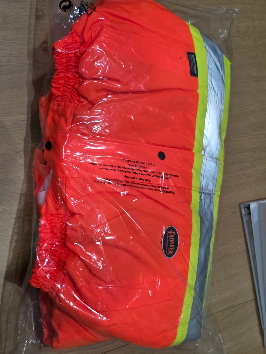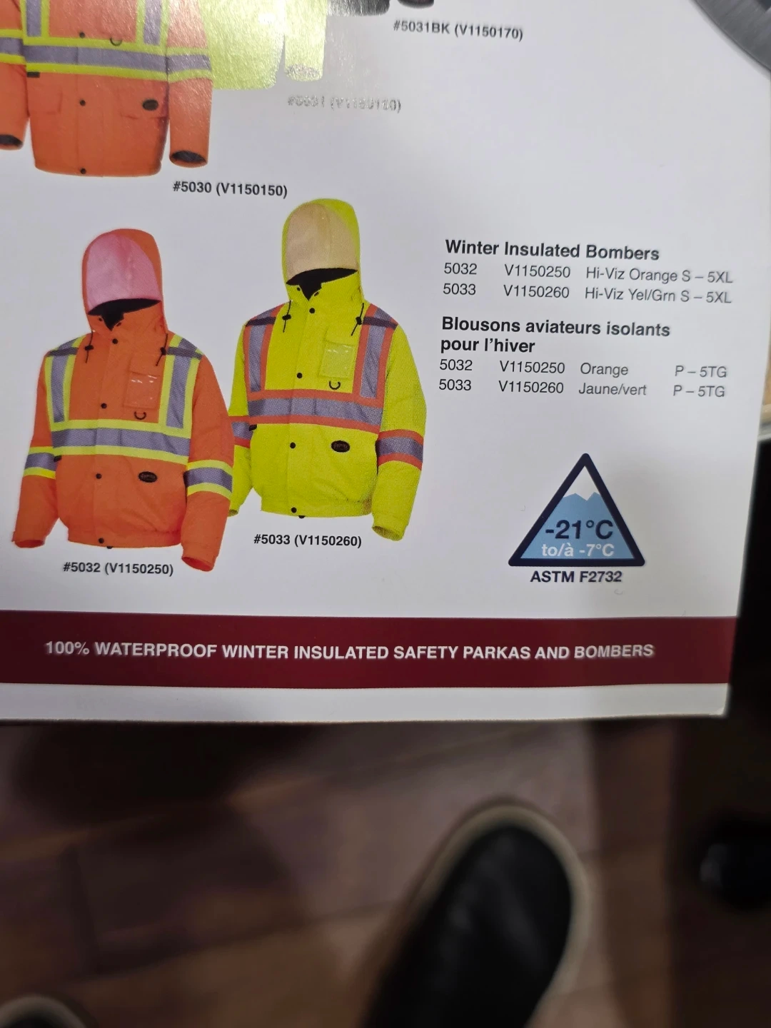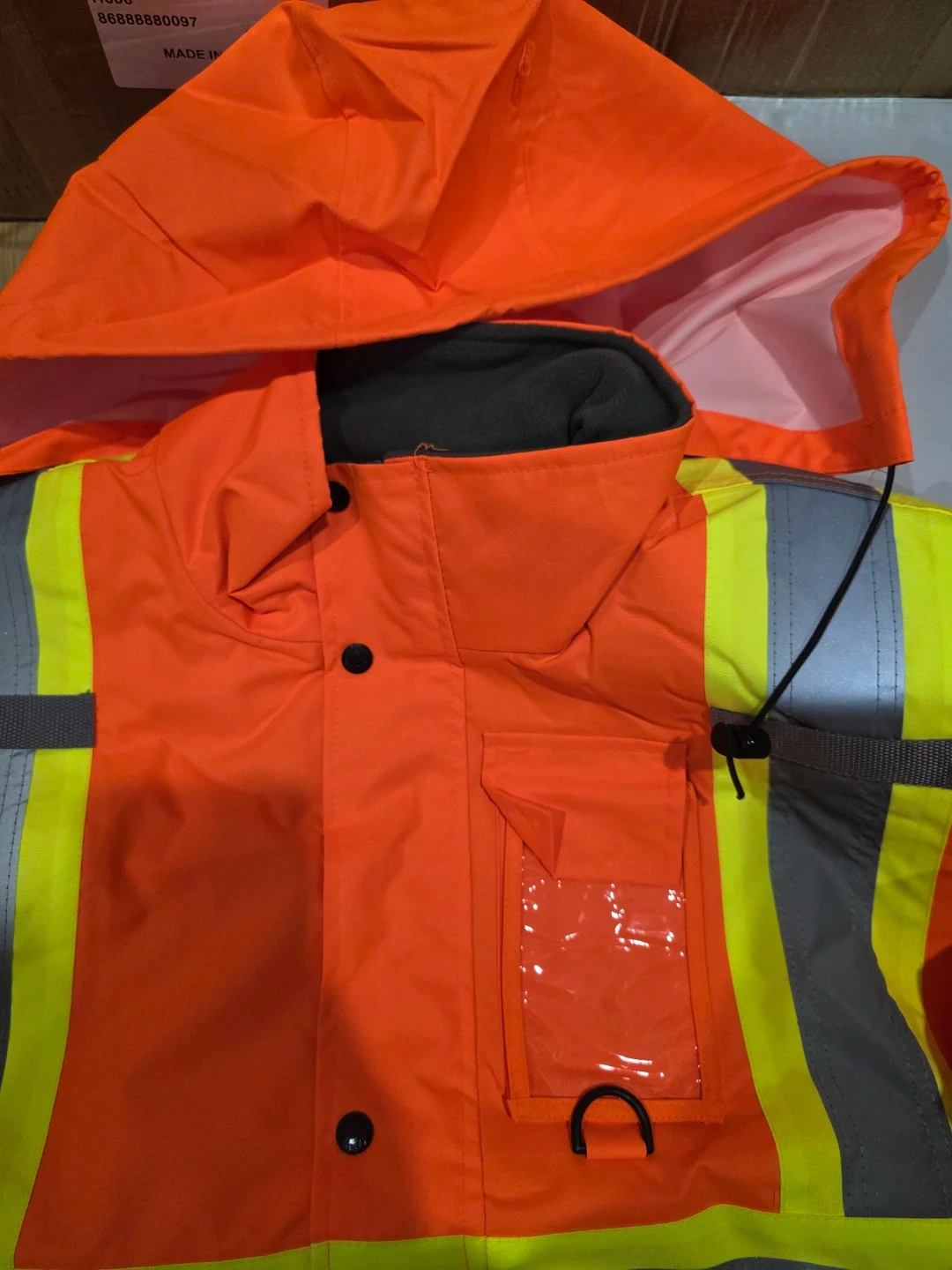 Winter insulated bomber jacket by Pioneer. It's Hi-Viz Orange. It's 100% waterproof with ASTM F2752 rating and rated for -21°C.