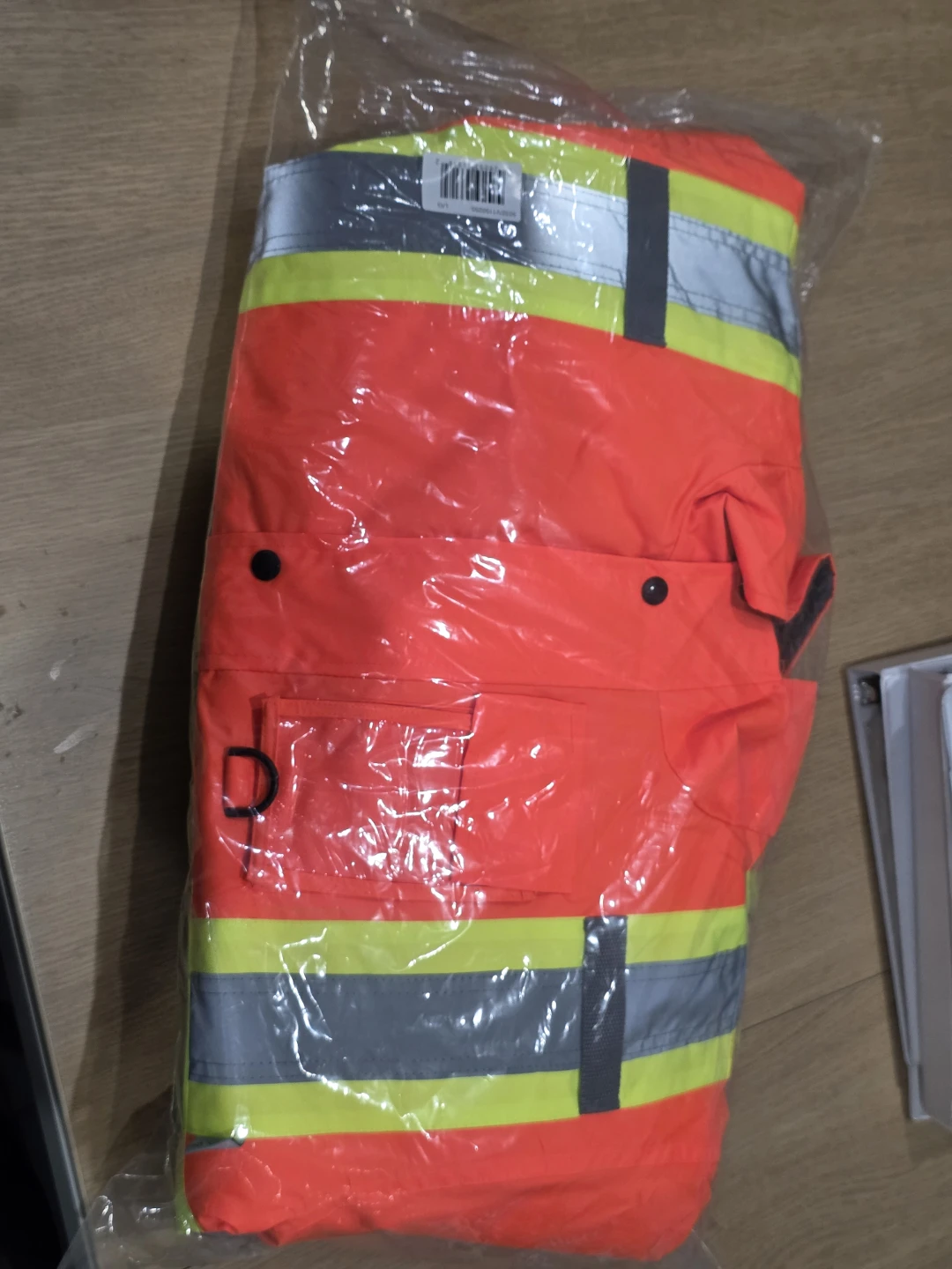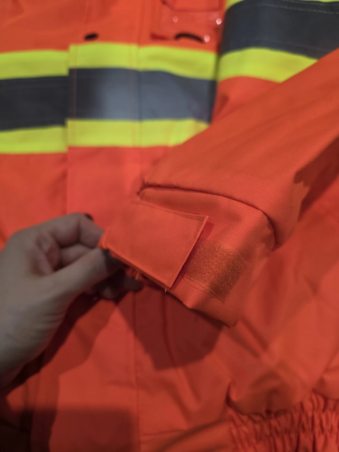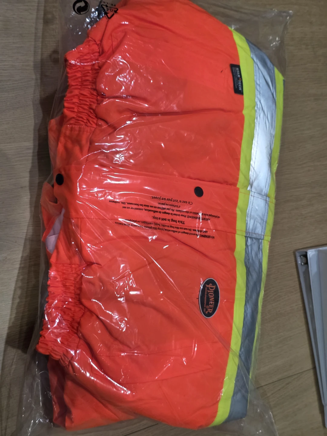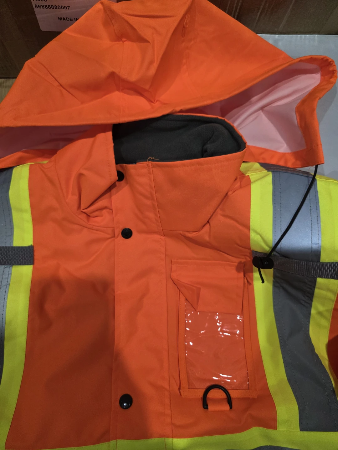 Winter insulated bomber jacket by Pioneer. It's Hi-Viz Orange. It's 100% waterproof with ASTM F2752 rating and rated for -21°C.