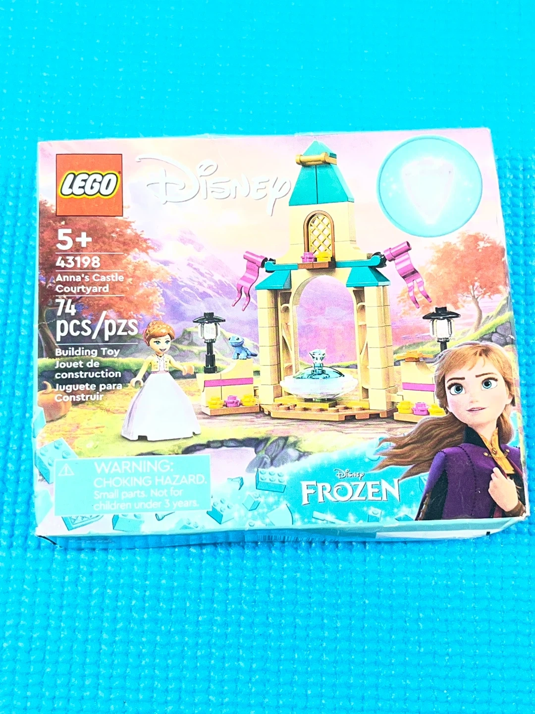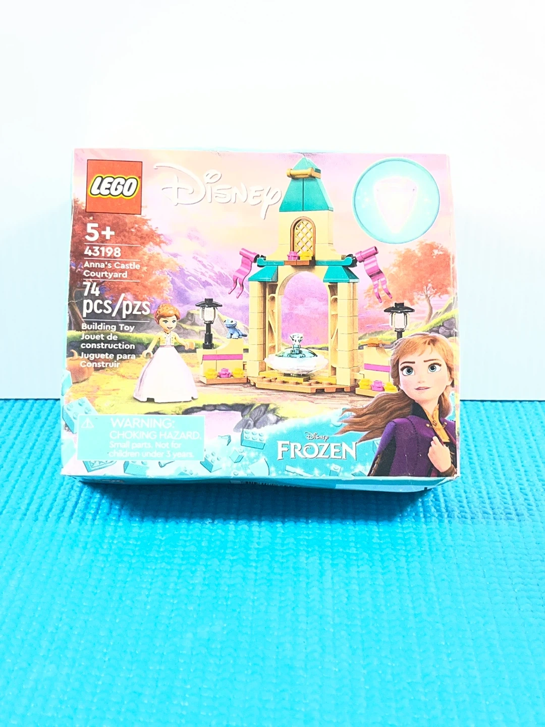 This LEGO Disney set features Anna's Castle Courtyard with 74 pieces. It's designed for ages 5 and up. It's a fun building toy for Disney Frozen fans!