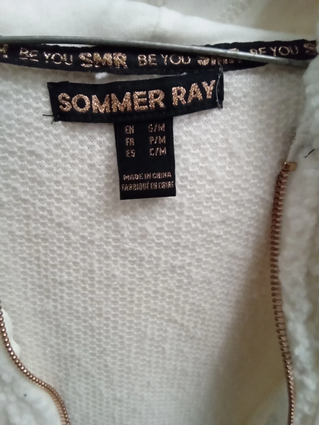 Selling a super cozy Sommer Ray sherpa hoodie in a size small/medium! It's a lovely white colour and features a full zip with rose gold accents. Perfect for chilly days!