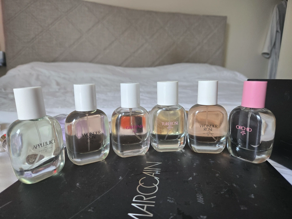 Set of 6 Zara Day Collection perfumes, all 10ml. Includes: Applejuice, Wonder Rose, Gardenia, Tuberose, Wonder Rose, Orchid.
