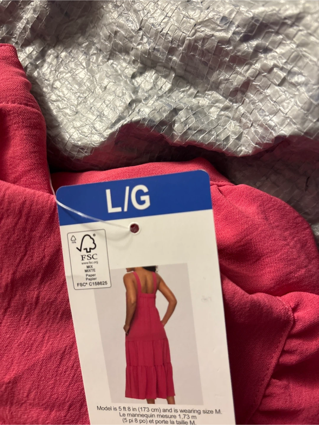 A vibrant pink, tiered maxi dress from Black Bow. It's a size L/G with a relaxed fit. This dress is perfect for warm weather outings!