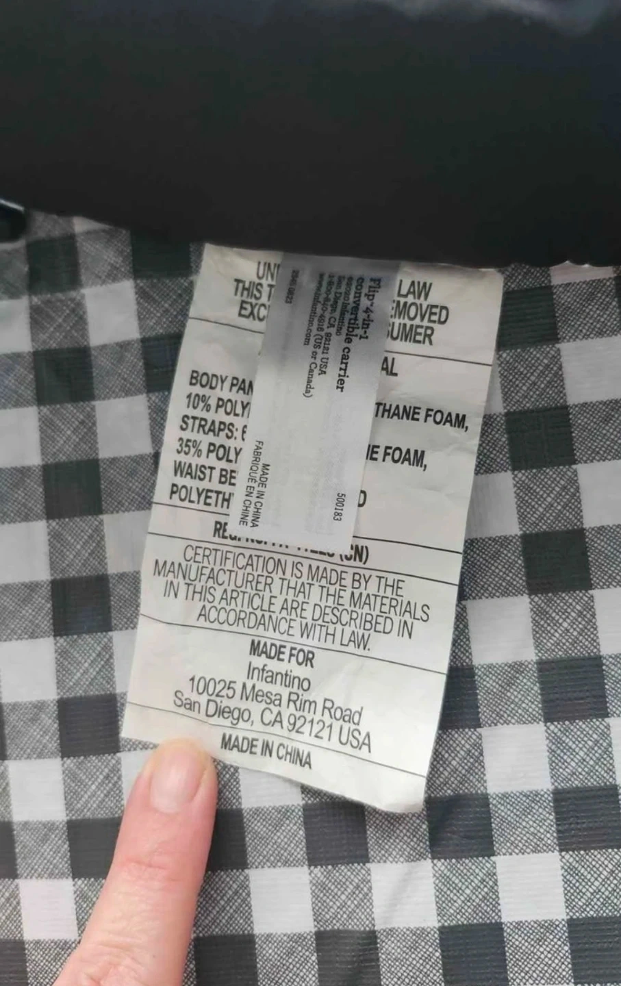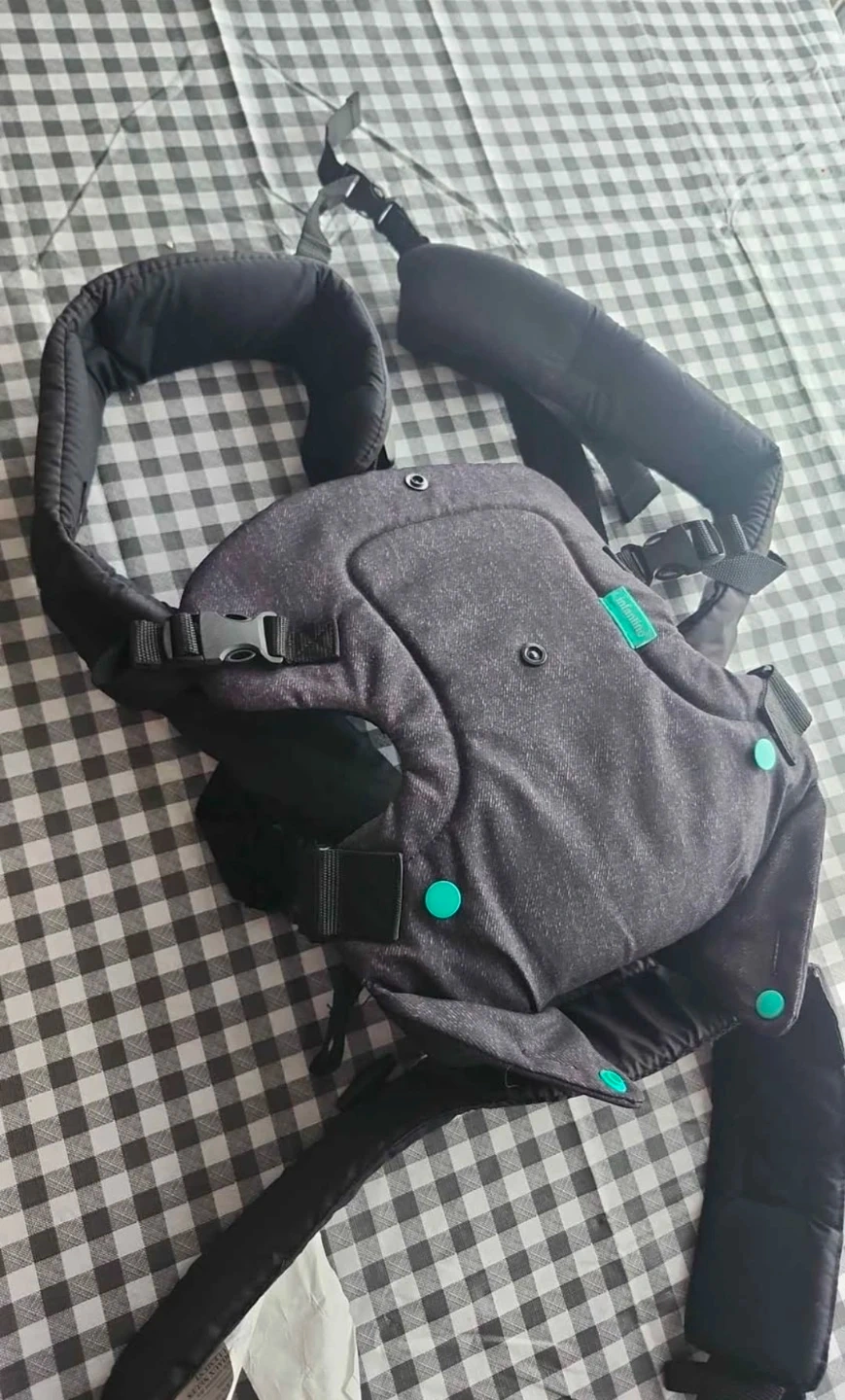 This Infantino Flip Advanced 4-in-1 baby carrier is in black denim. It's designed for newborns to toddlers weighing 8-32 lbs. It offers multiple carrying positions for your convenience!
