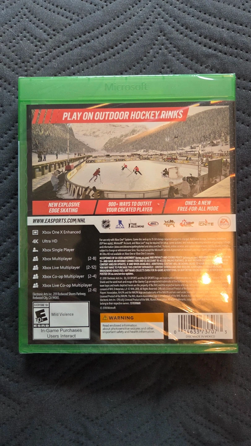 EA Sports NHL 19 video game for Xbox One. It's brand new and still sealed in its original plastic wrap. This edition offers 4K Ultra HD and Xbox One X Enhanced support.