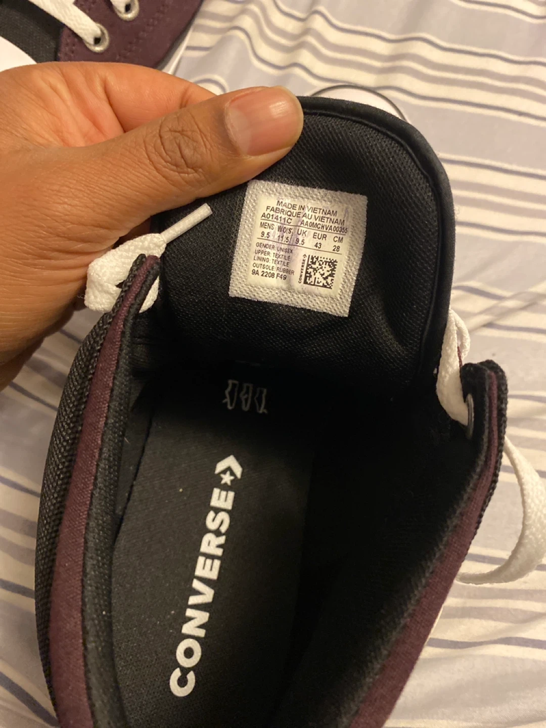 Classic Converse All Star Chuck Taylor mid-top sneakers in a burgundy and black colourway. Featuring a durable canvas and synthetic upper, lace-up closure, and the iconic Chuck Taylor ankle patch. These shoes are built for everyday wear. This shoes for unisex’s Men size 9.5 and Women 11.5