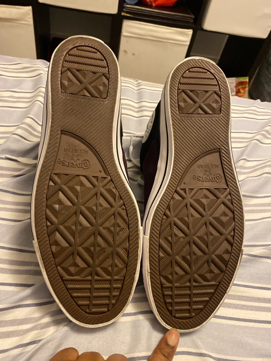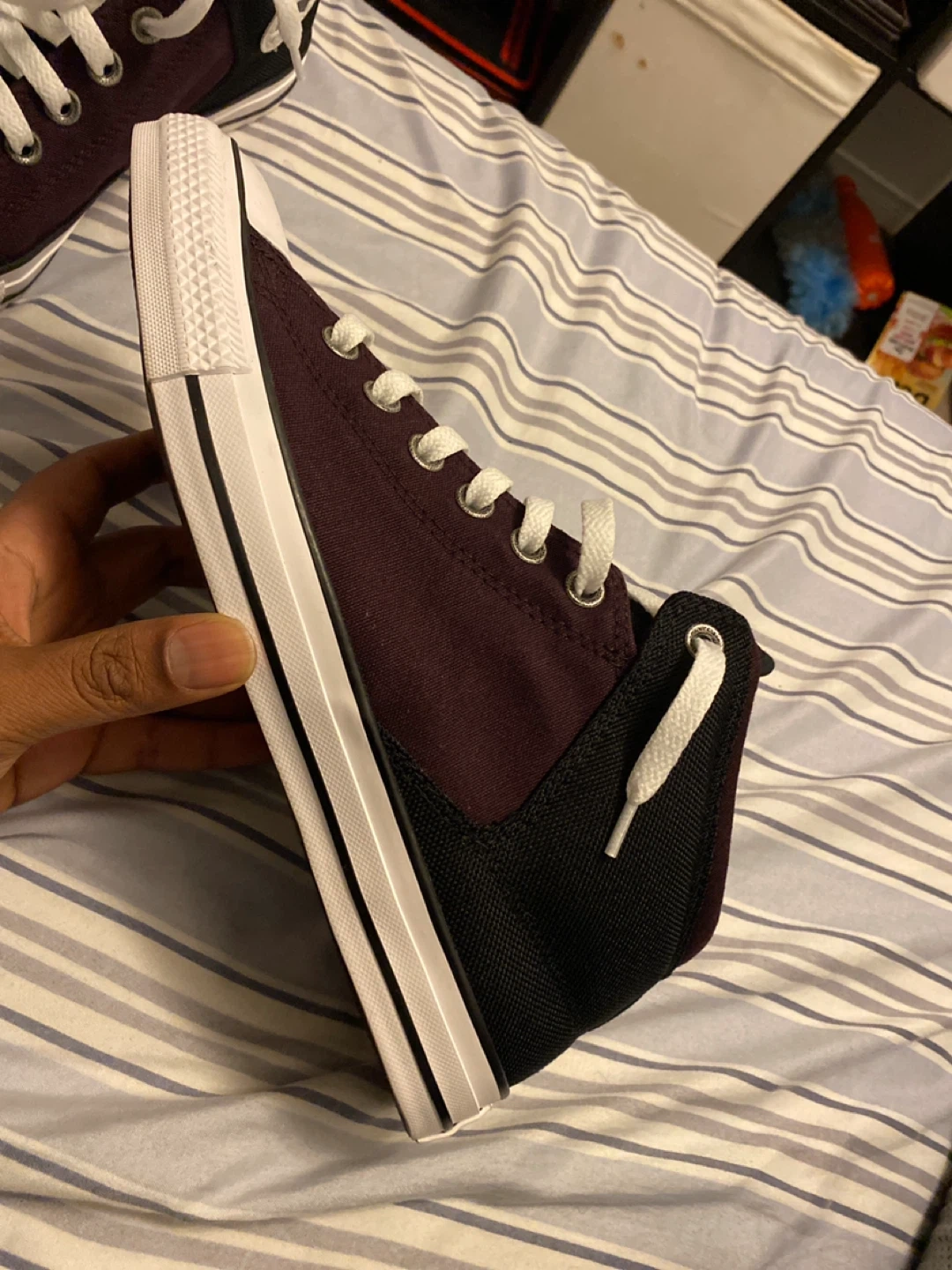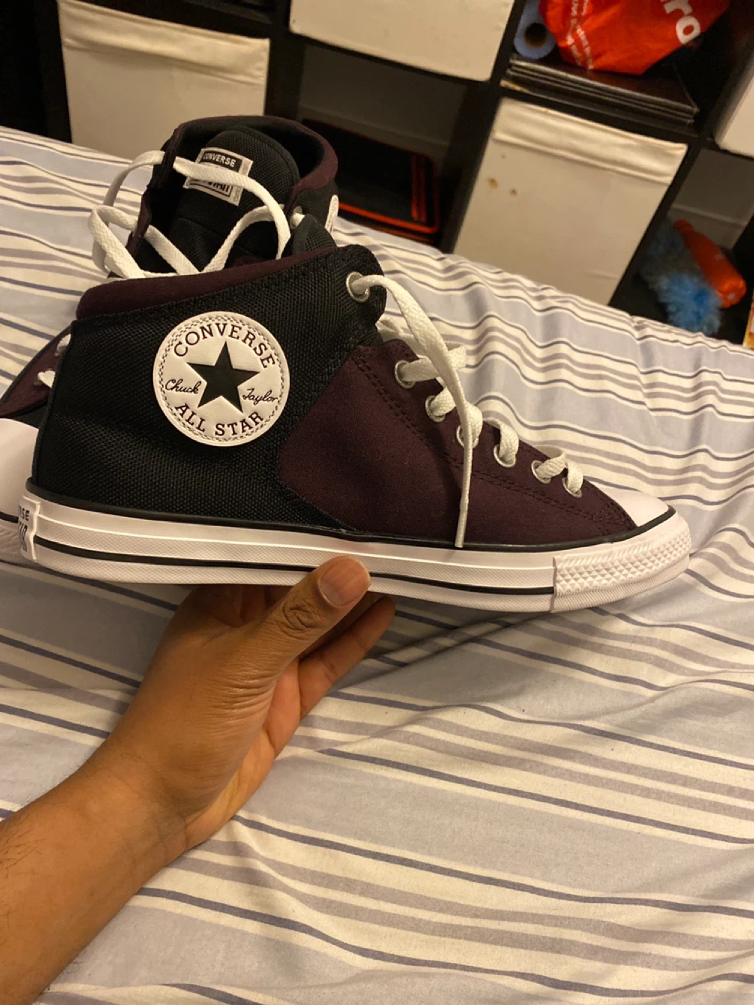 Classic Converse All Star Chuck Taylor mid-top sneakers in a burgundy and black colourway. Featuring a durable canvas and synthetic upper, lace-up closure, and the iconic Chuck Taylor ankle patch. These shoes are built for everyday wear. This shoes for unisex’s Men size 9.5 and Women 11.5
