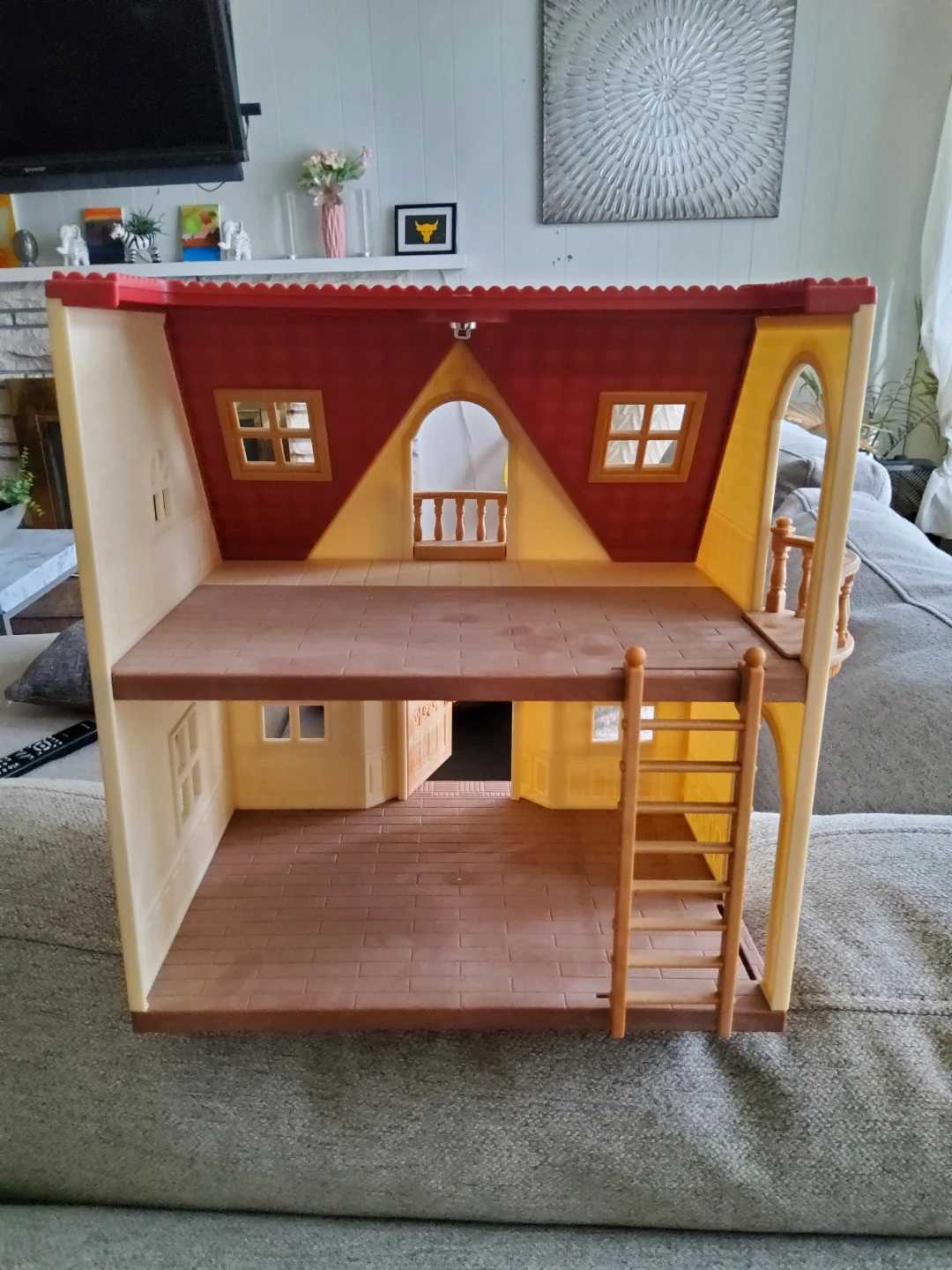 This adorable house features two stories, a balcony, and a ladder. It's in great condition and ready for a new family of critters!