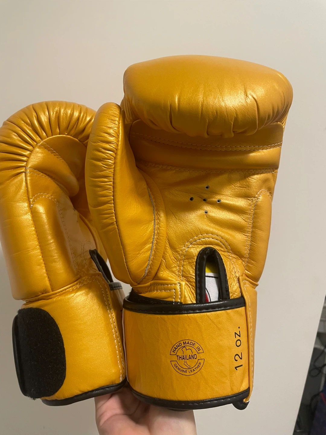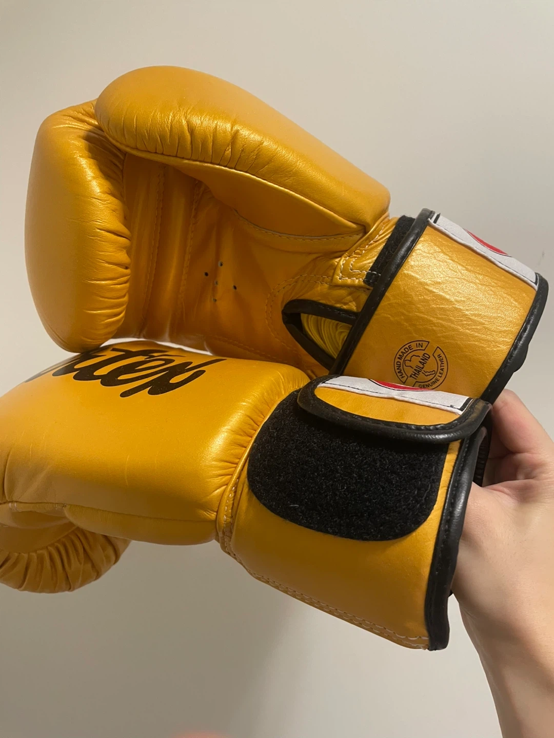These Fairtex boxing gloves are gold coloured and 14 oz. They're made for training or sparring. Perfect for martial arts practitioners!